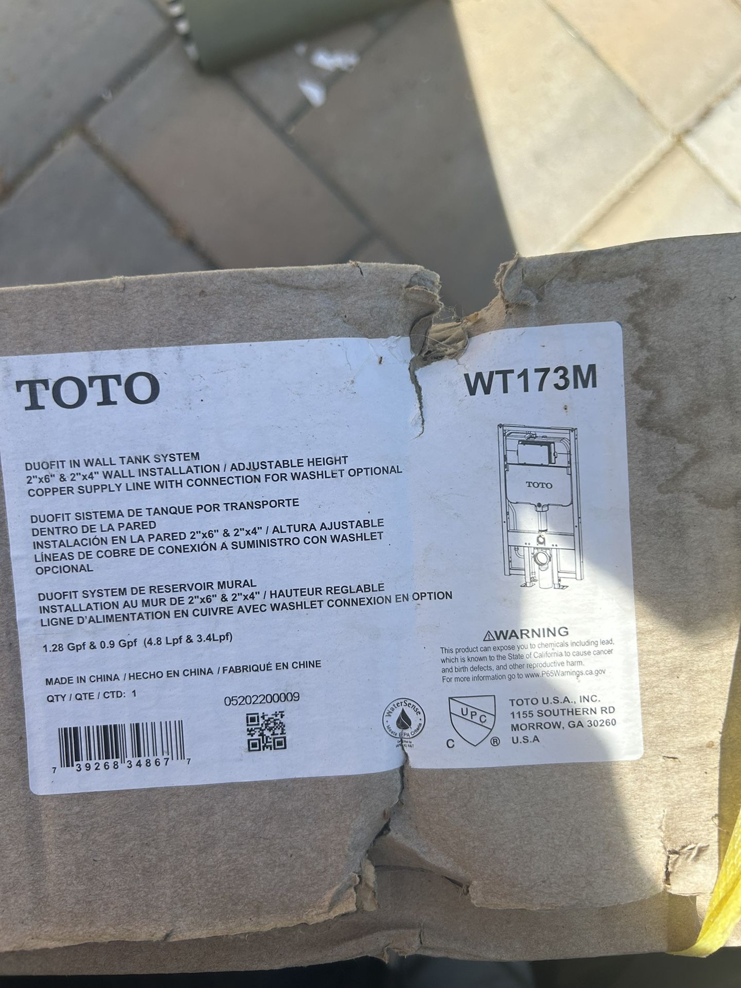 TOTO 1.28 GPF Dual Flush In-Wall Toilet Tank Only with Copper Supply Line Model:WT173M