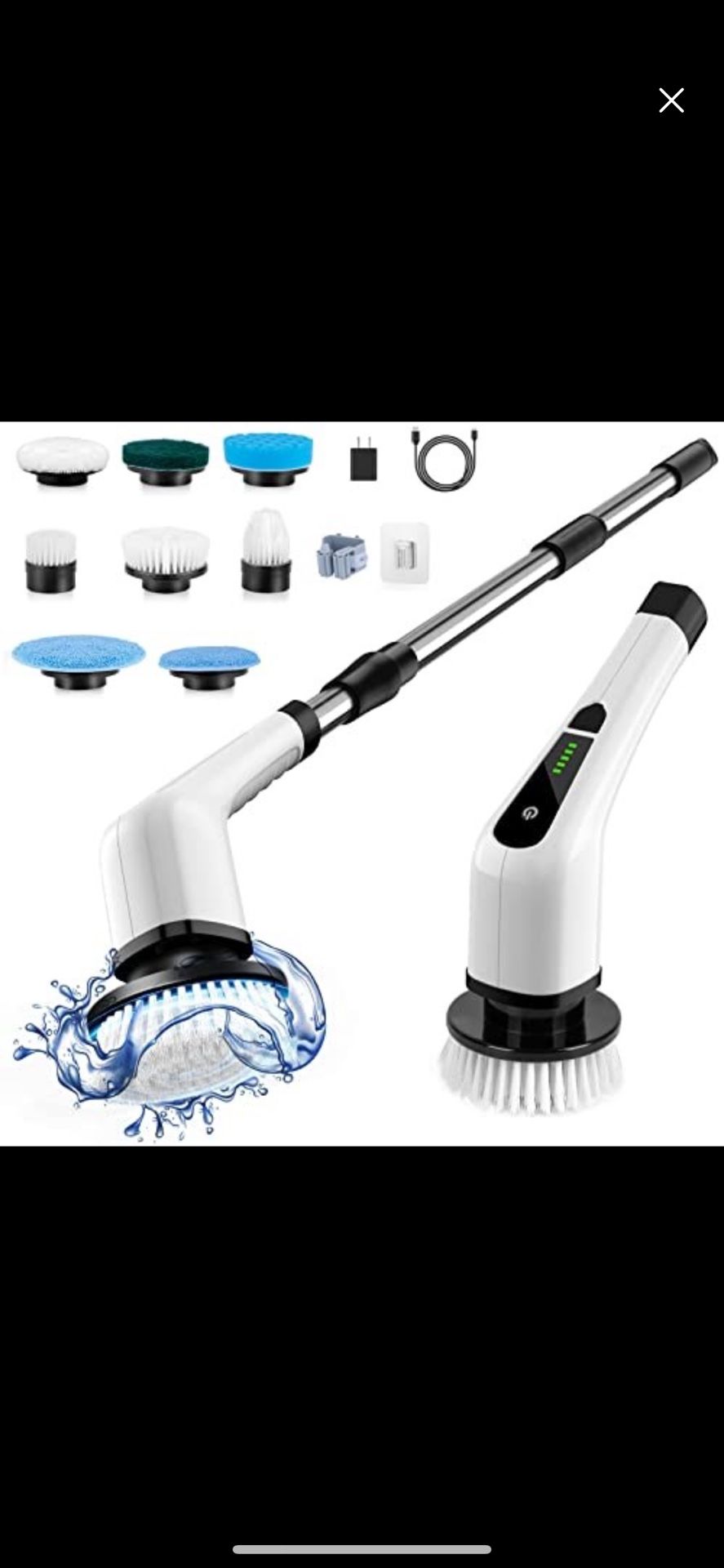 Cordless Electric Spin Scrubber,Cleaning Brush Scrubber for Home, 400RPM/Mins-8 Replaceable Brush Heads-90Mins Work Time,3 Adjustable Size,2 Adjustable Speeds for Bathroom Shower Bathtub Glass Car