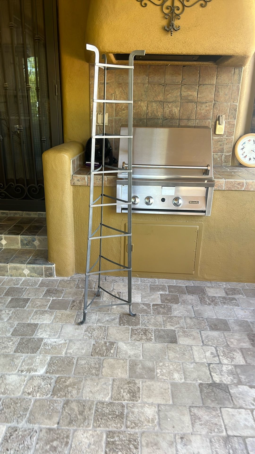 Display your finest cookware, plants, or decorative items on this beautiful handcrafted 8 Tier stand. Upright are made with solid steel, professional grade Forged by our skilled craftsmen in the Pacific Northwest, USA, very nice and clean , usually brand new, never been used. Sit in the storage. A tall, triangular shape,,cast iron pot rack. American made. 8” Wide at the top. Dimensions 16ʺW × 16ʺD × 77.5ʺH Styles American
