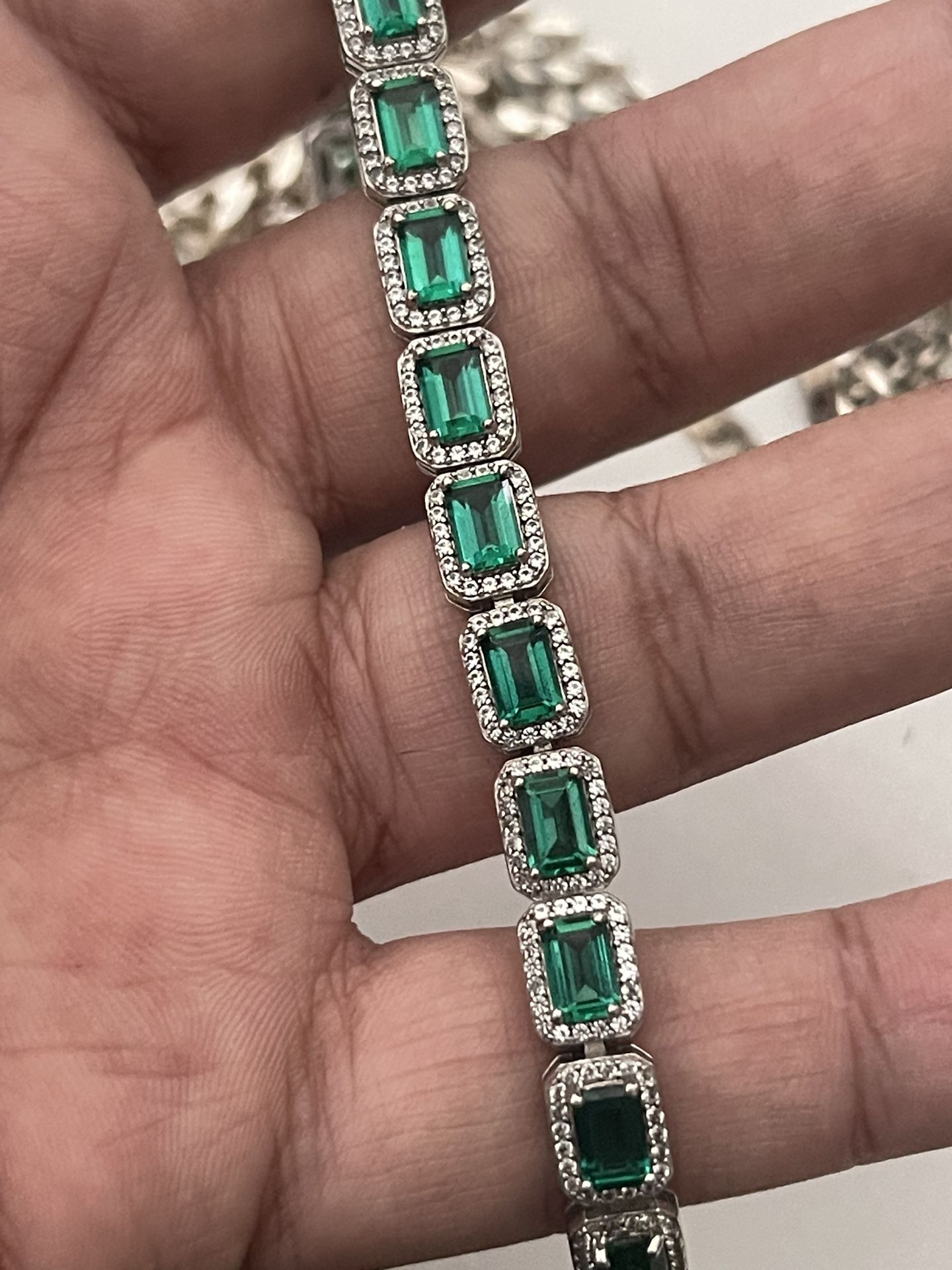 Beautiful lab emerald silver bracelet