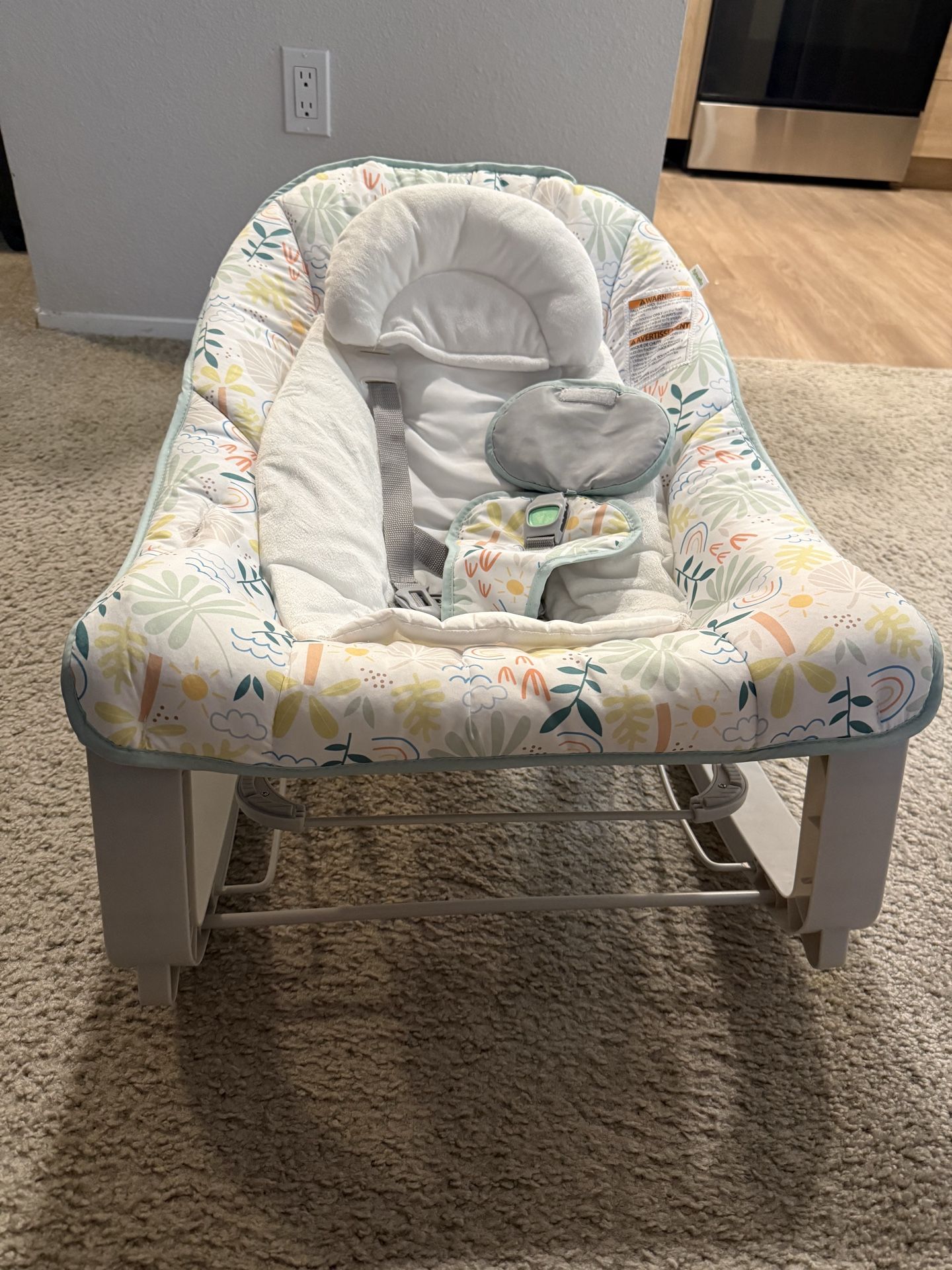 Barely used. Useful for ages 0-3. Has 3 modes, rockers bouncer and chair. Comes with auto vibration mode