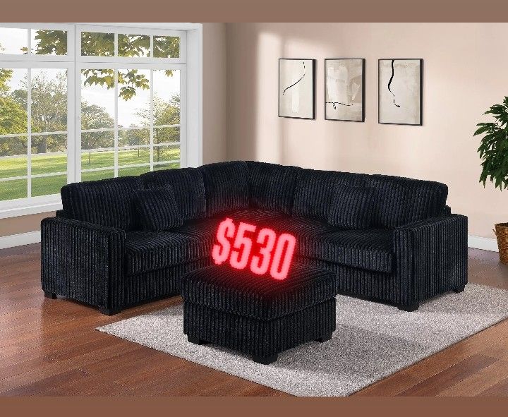 Black Corduroy Jumbo Material β«β¨ Ottoman Is Included π₯β New ; In Box And Plastic Sealed ππ¦ Ready For Pick Up Or Delivery π³π