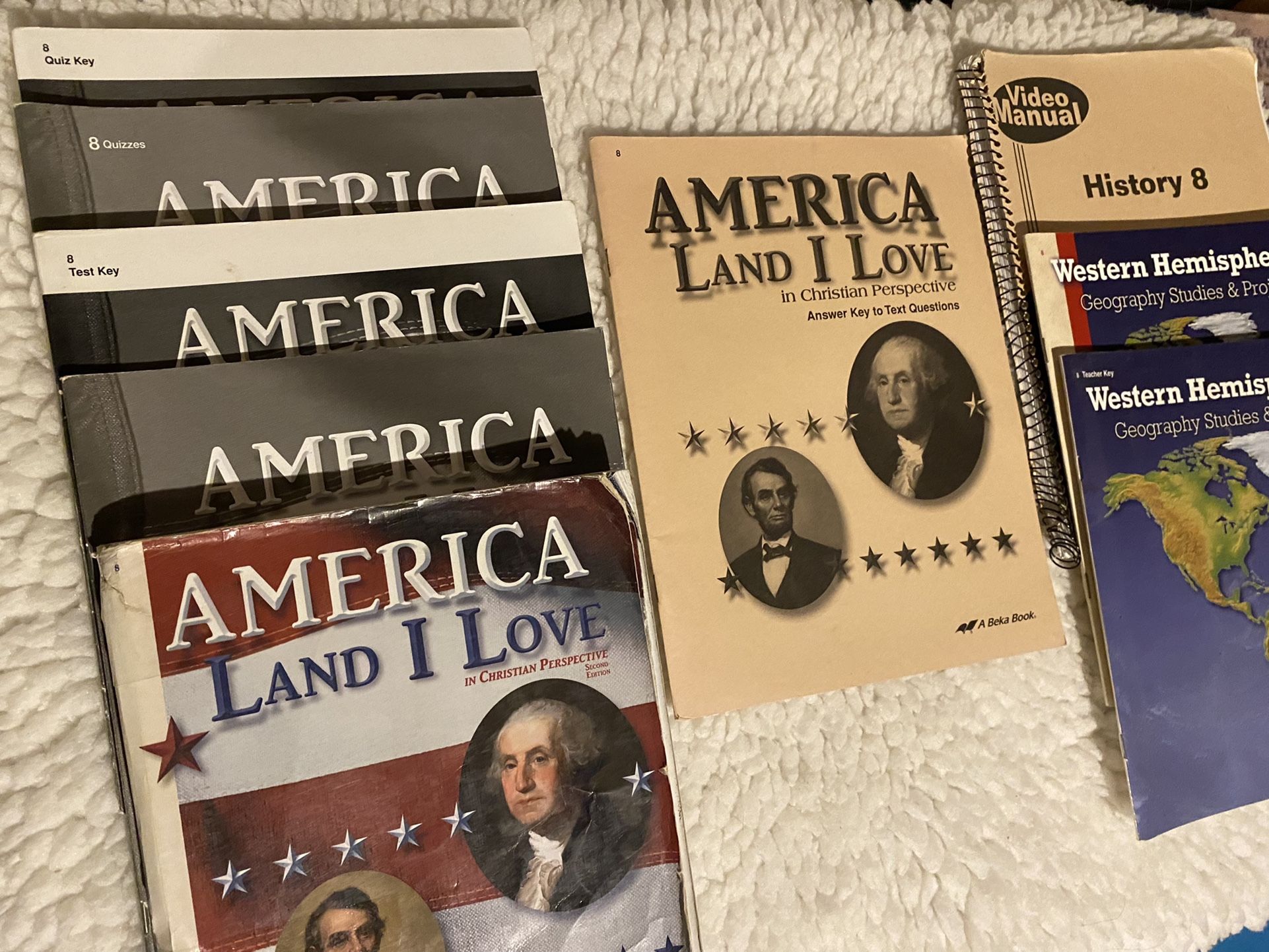 History student book with student highlights , but student didn’t answer questions, student tests and quizzes, text key answer book, lesson plans and no video needed, student map book and map key