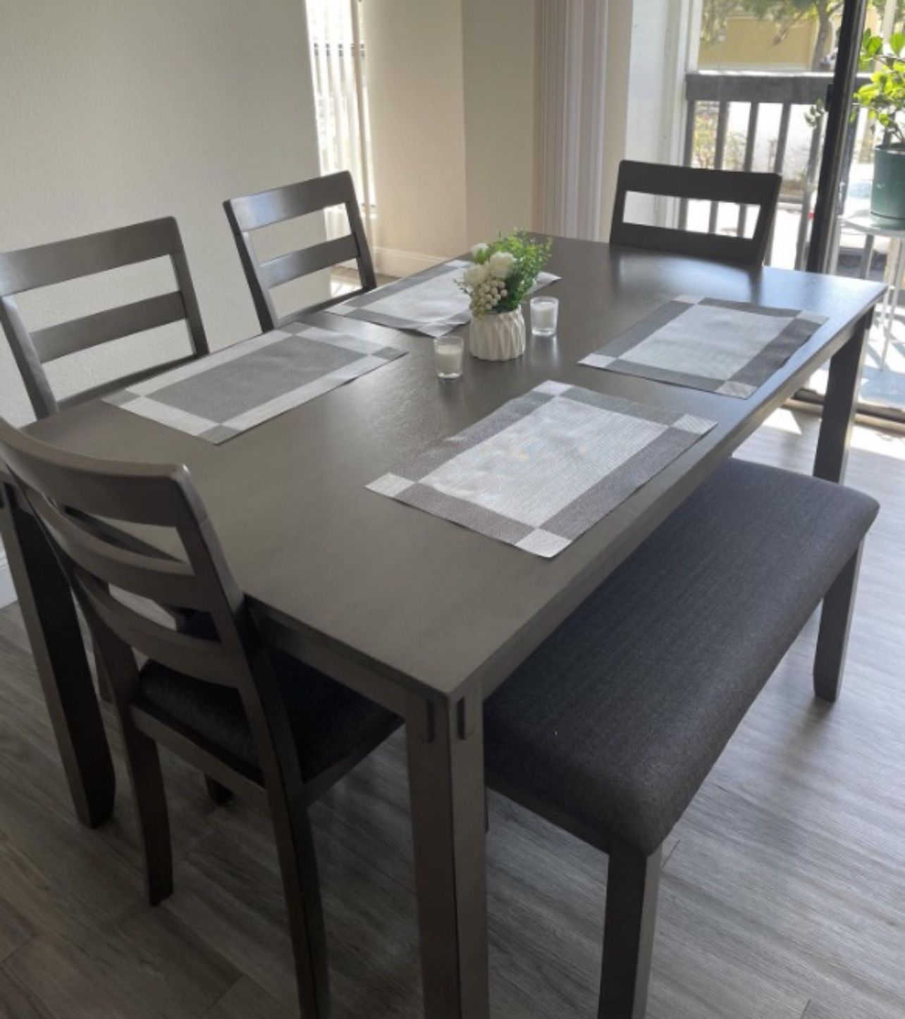 6 Piece Wood Dining Table Furniture Set w/ Bench