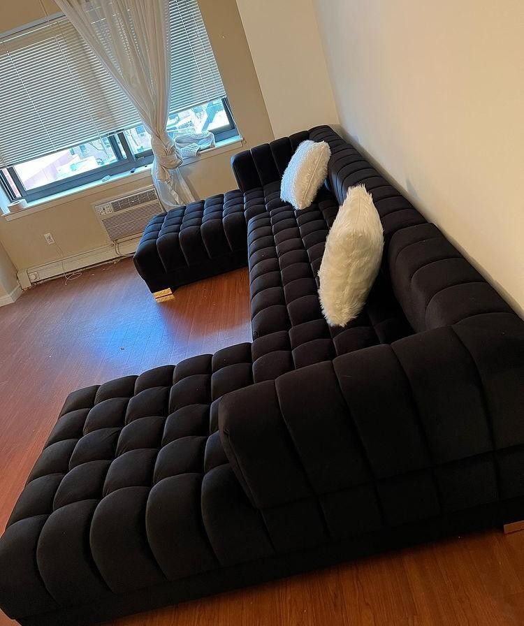 Brand New/ Black Velvet Double Chaise Sectional, Seccional, Couch// Delivery Available