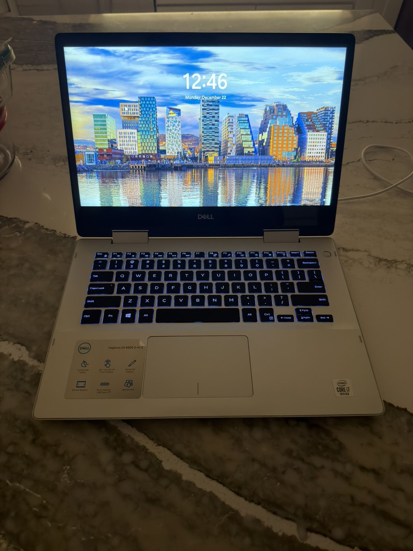Used Dell 14 Inch Inspiration 5000 2 in 1 Laptop intel core i7 processor 500gb storage and 16gb of ram comes with charger