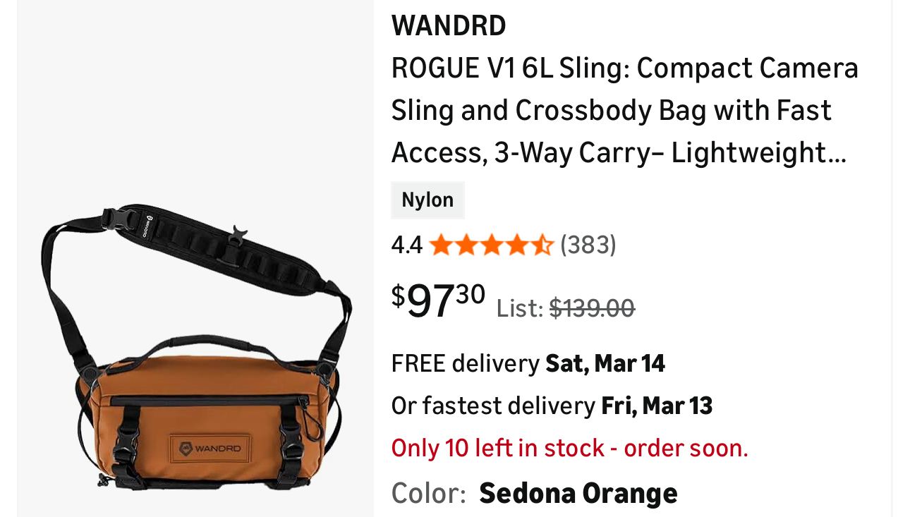 WANDRD ROGUE V1 6L Sling: Compact Camera Sling and Crossbody Bag with Fast Access, 3-Way Carry– Lightweight Everyday Bag Great for Travel, Photography, and Daily Use (Sedona Orange) Shelf 1