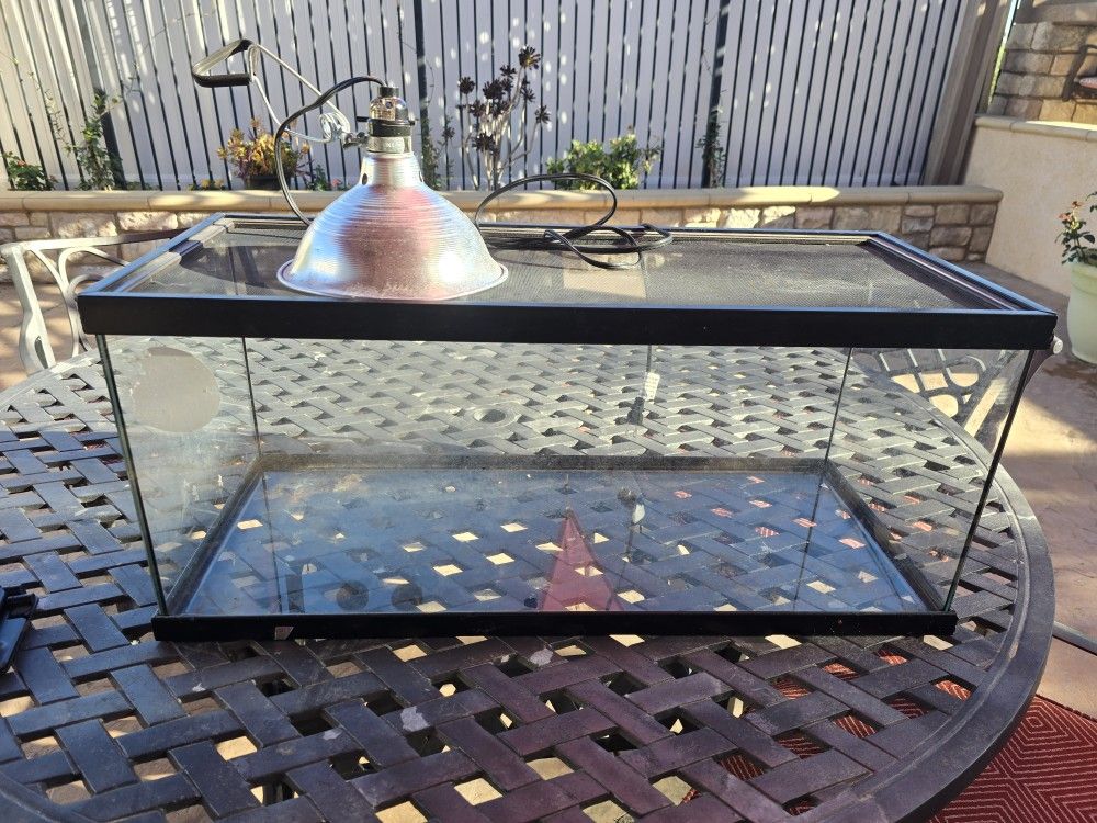 Reptile Tank with mesh top, heat lamp, hygrometer, 30 inch wide, 13 inch tall, 12 inch deep. Good condition. $50