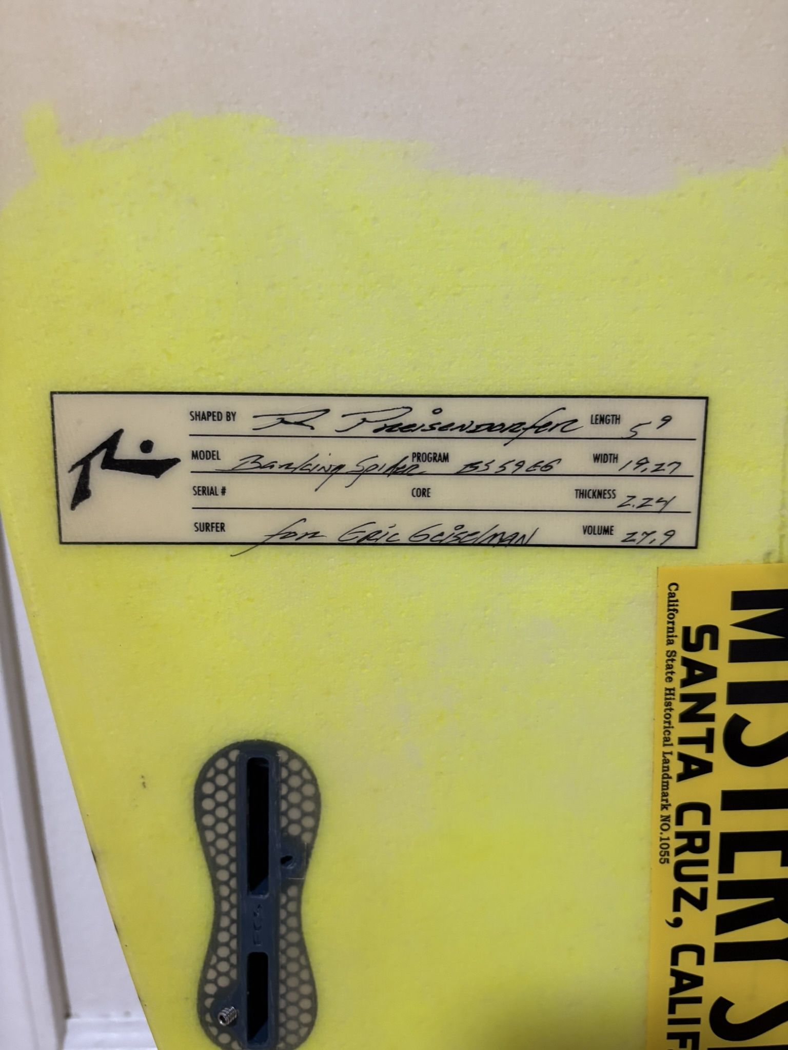 Shaped for Eric Geiselman. Super light and punchy in small surf. Good for intermediate to advanced surfers. Board is cleaned up now, the pictures show some wax etc.