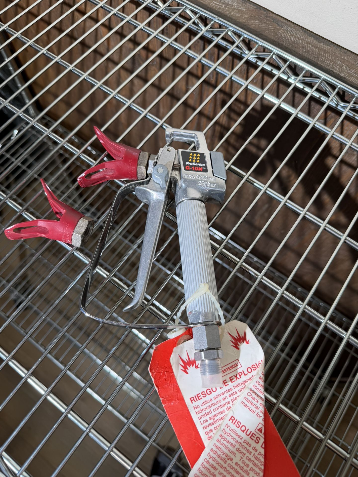 Professional airless spray gun Wagner / Titan ProSeries G-10N. Rated up to 3600 PSI (250 bar). Used with airless paint sprayers for residential and commercial painting. Good used condition. Clean, solid, sold as shown.