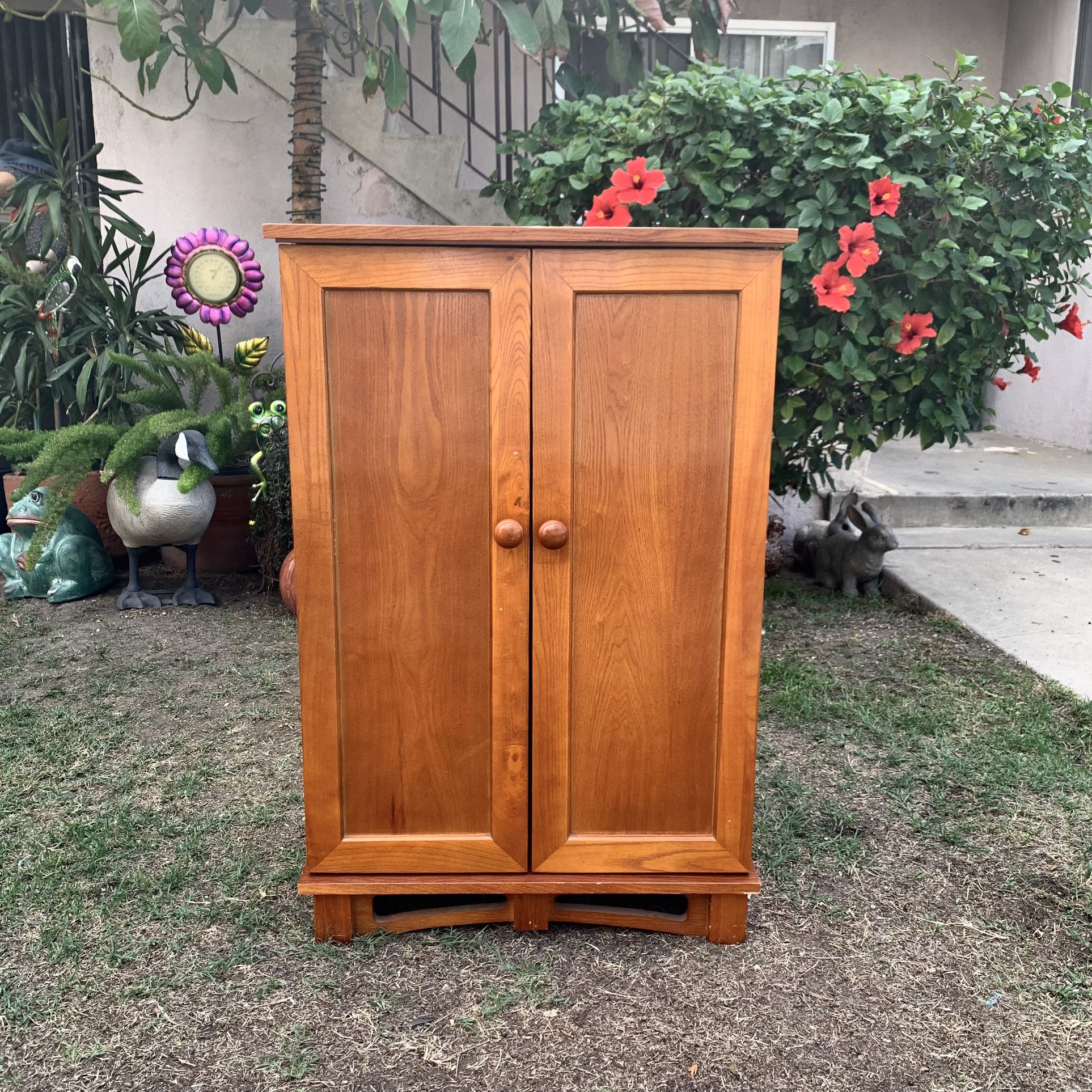 Beautiful wooden storage cabinet. This is a very nice Cabinet that opens up to store multiple items. It’s a solid wood piece. Can be delivered for a fee. Message for inquiries.
