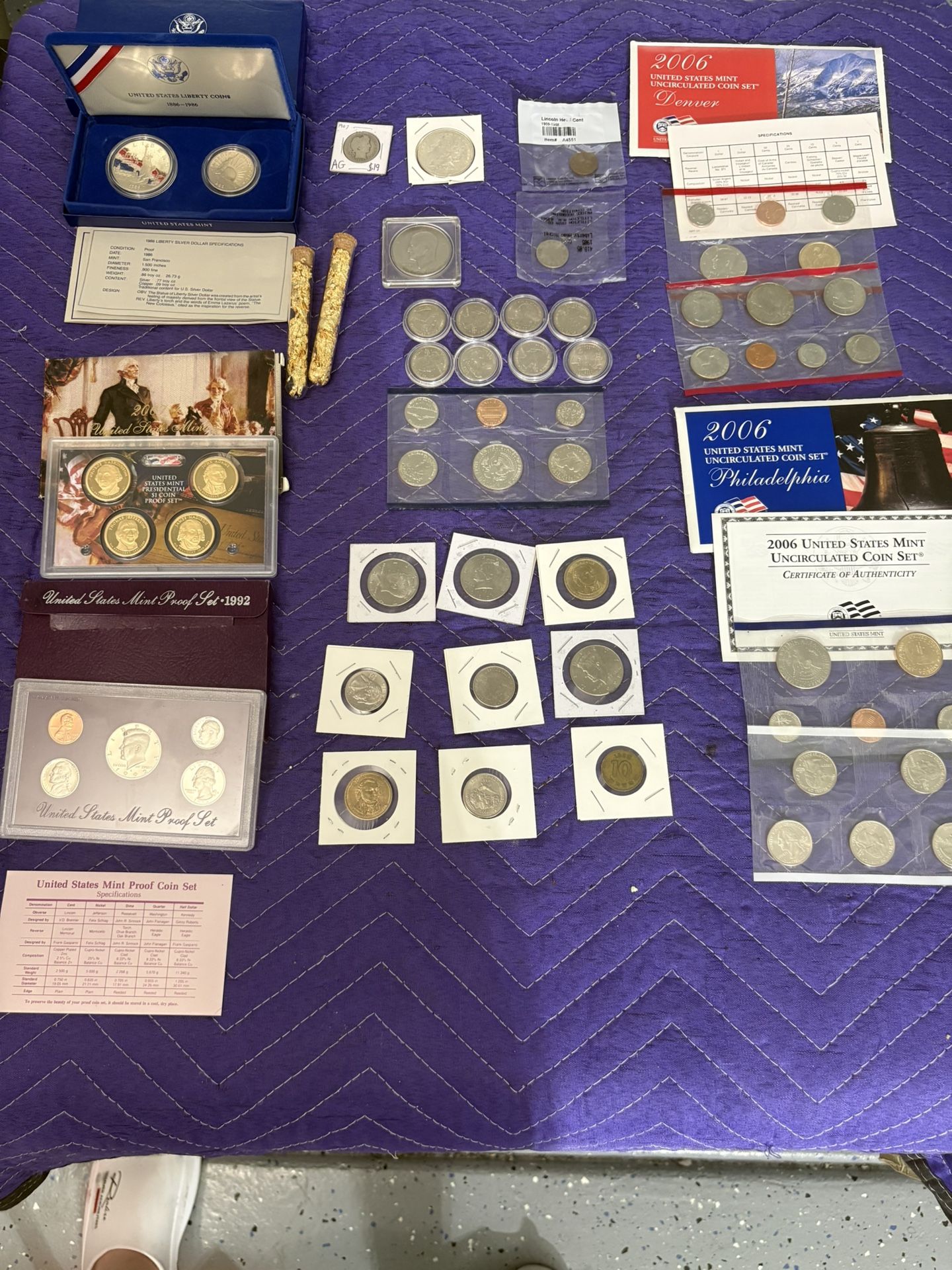 Silver coins and some uncirculated coins and two tubes of 22K gold flake $210 for everything
