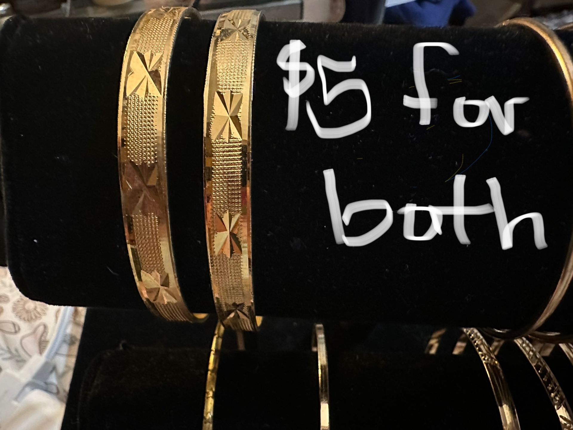 Gold tone bangles, prices in picture sunflower pin $5, dragonfly pin $5, large purple Brooch $30 Please see my other listings. Will do deals on bundles