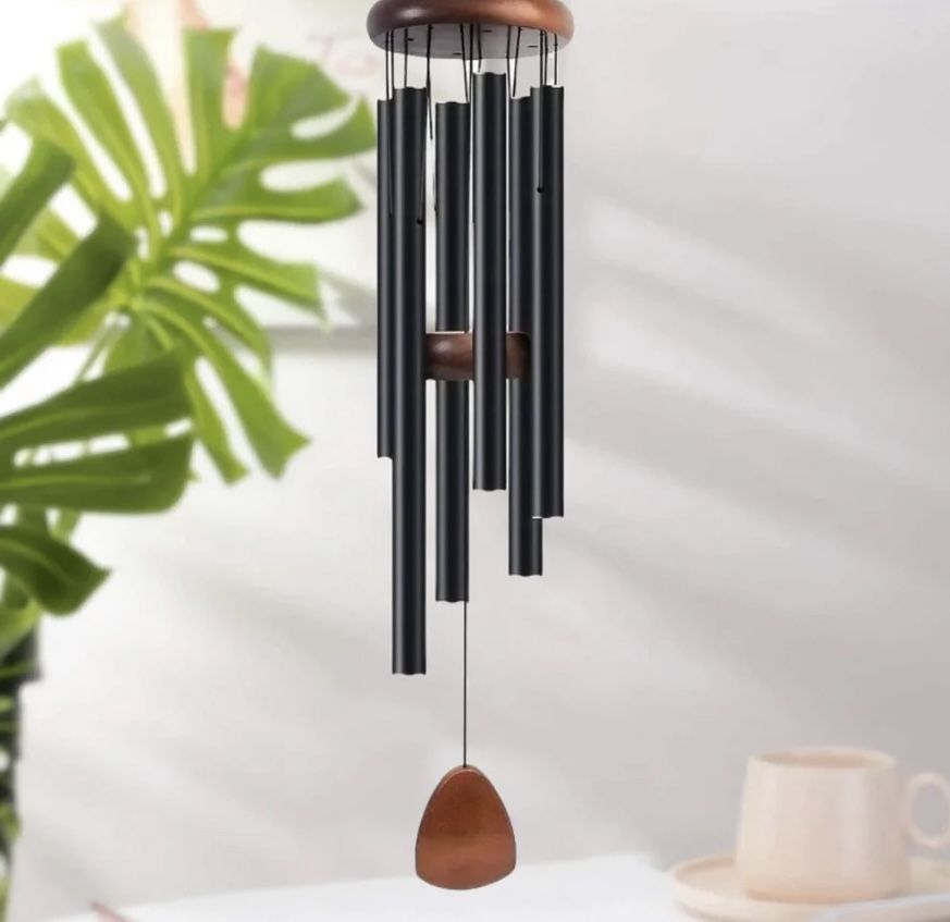 This 26” decorative wind chime features 6 black aluminum tubes and a wooden top, made for enhancing outdoor ambiance with soothing melodic tones. Made of high-quality metal, these wind chimes are designed to withstand outdoor elements and last for years. It also features an adjustable wooden striker, allowing you to customize your preferred position for optimal sound and aesthetic appeal. Brand new, never used. I paid $25 on Amazon. Located near Cheyenne and Decatur.