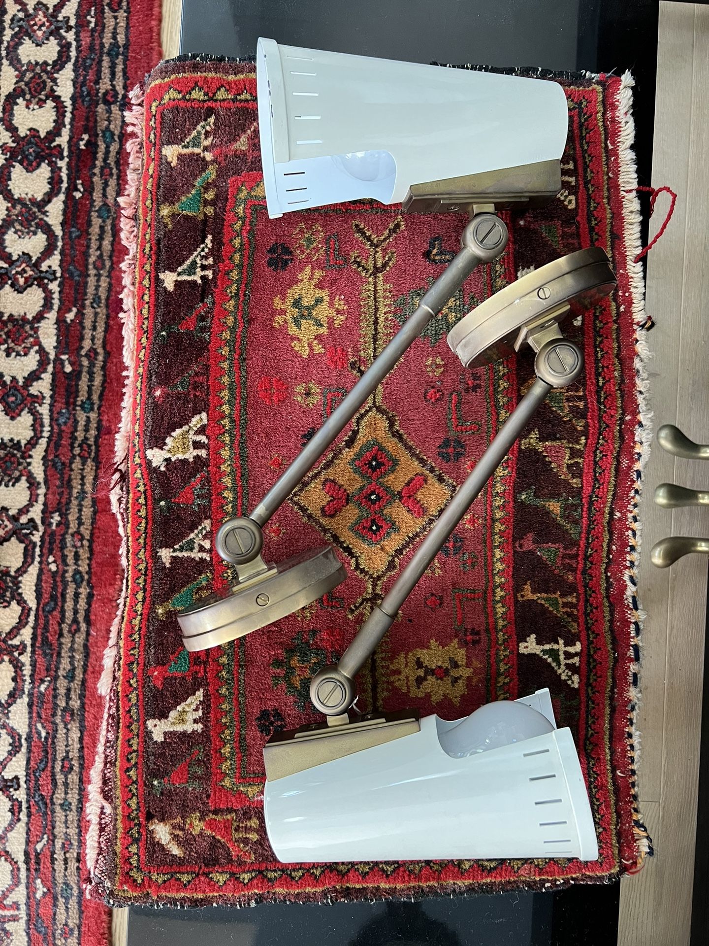 Set of Two Vintage MCM Brass with Enamel Heads Wall sconces Hardwired