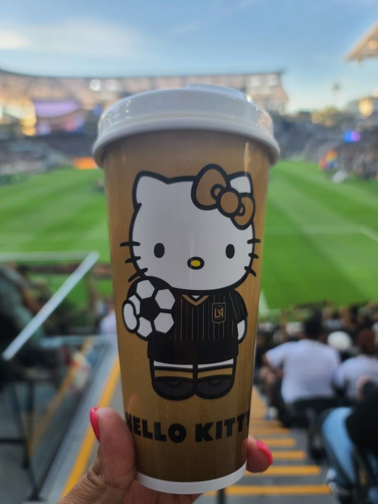 Brand new. Never used. Bought without liquid! Reusable coffee cup. Only available at the game. Beautiful travel mug. Pickup in Chino. Hello Kitty Los Angeles Football Club Black and Gold. LAFC