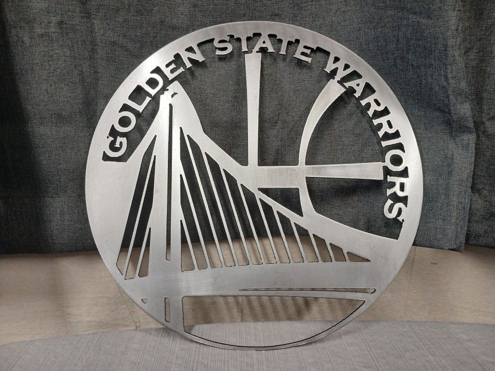 Golden state warriors art logo polished metal with a satin clear coat finish Measures 16 inch in diameter... CASH ONLY...$25