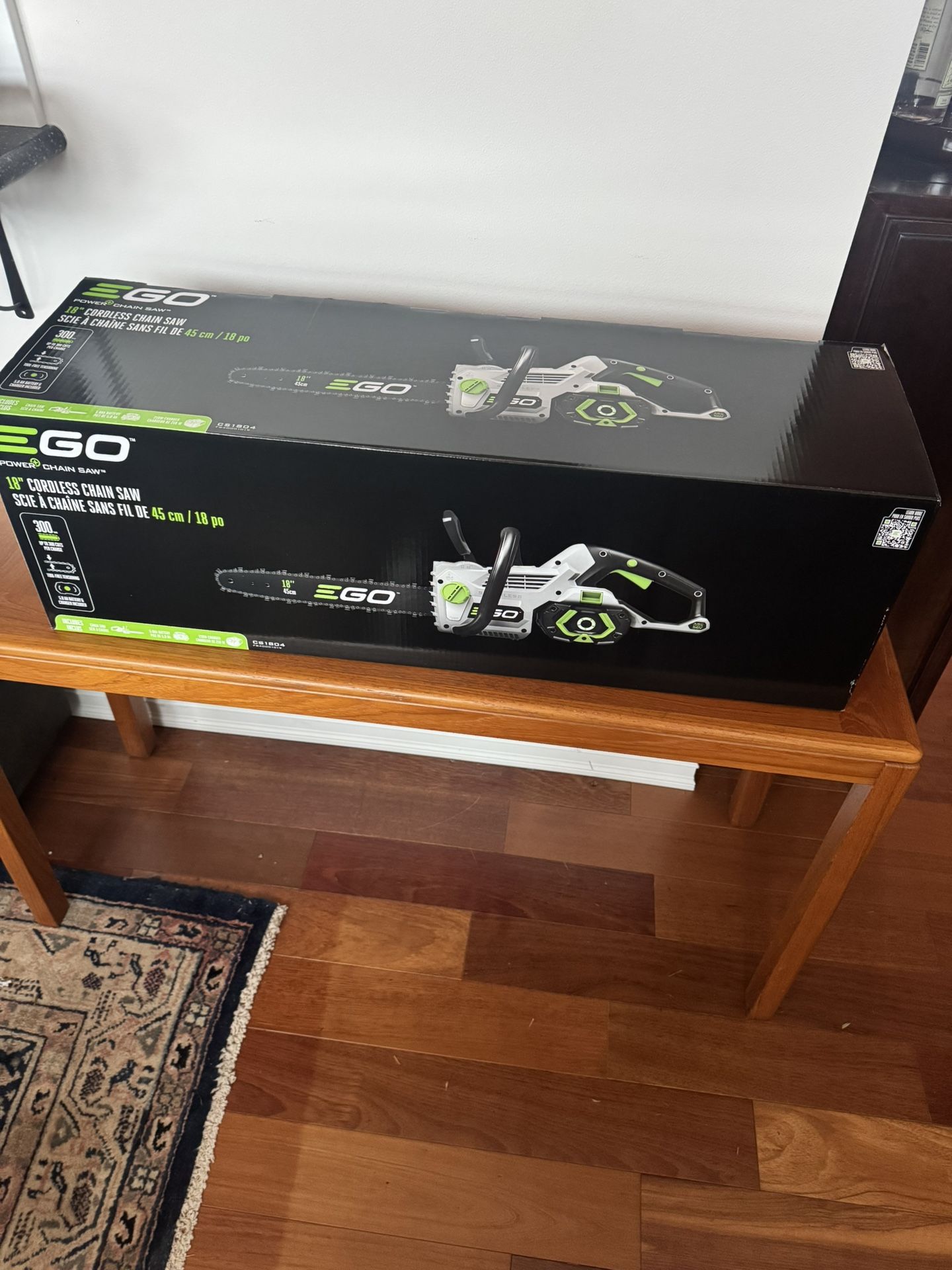 New inbox ego chainsaw with charger but no battery. $195 or best offer available to meet in Kingston Poulsbo or Silverdale depending on time and day. Thanks for looking. Have a great day.