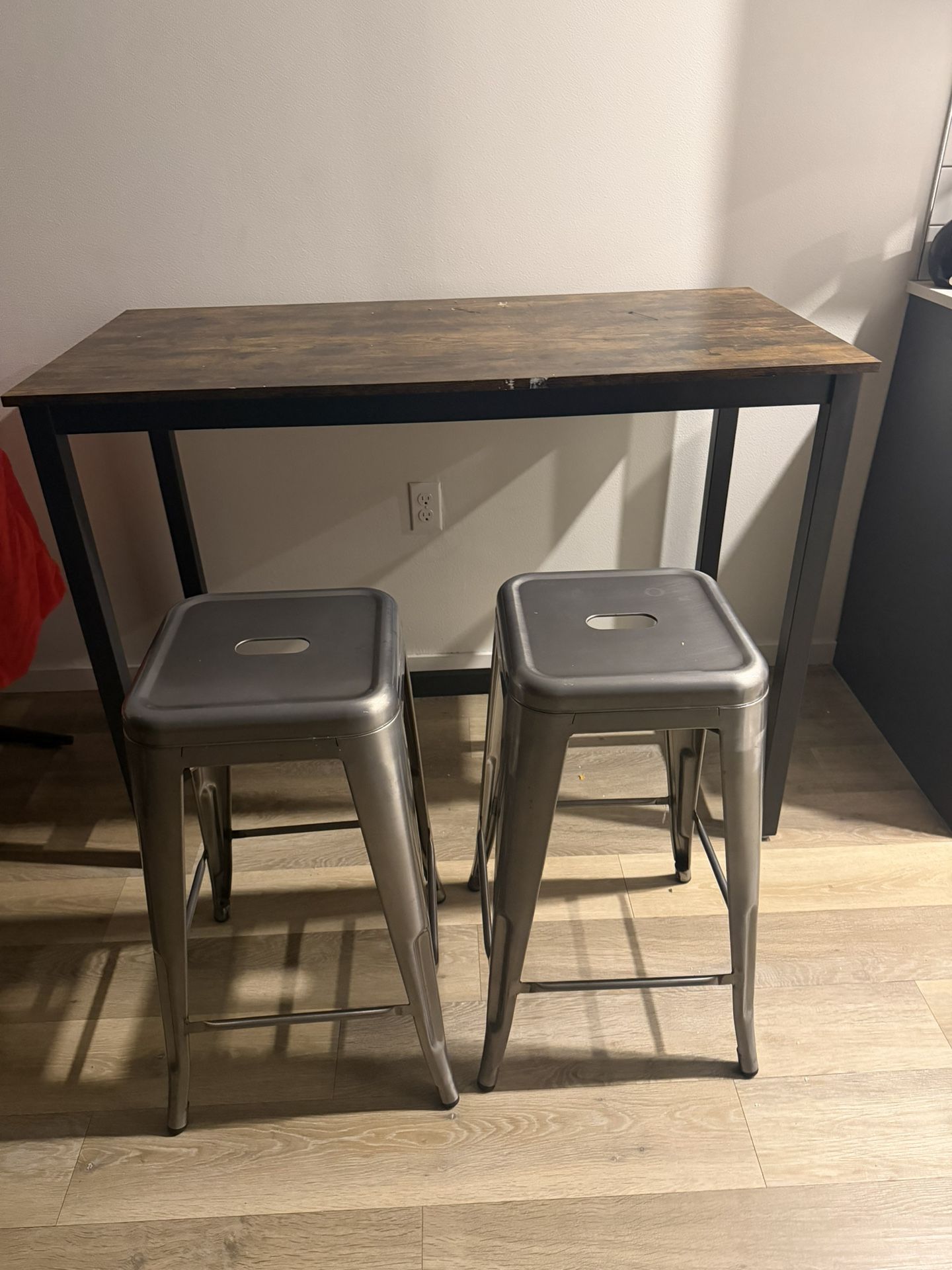 Perfect small apartment table 2 stools Chairs are balanced and not lob sided Table is stable and not broken anywhere Having to relocate or would keep.