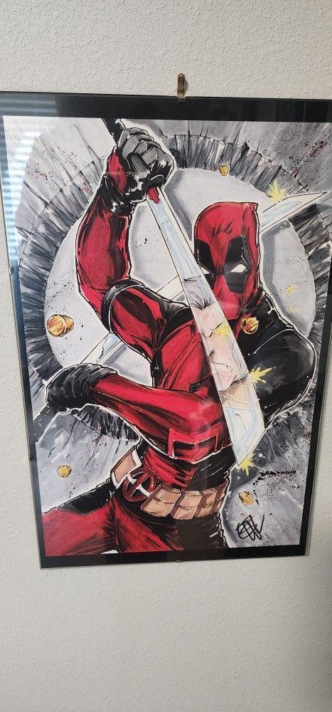 Signed framed artwirk of classic horror characters and superheroes. Frankenstein, Bride of Frankenstein, Dracula, Wolfman, Black Panther, Optimus Prime, Deadpool, and Creature from Black Lagoon. All are framed and mint condition. 11 x 17 in size. Cash only and firm . Humble Texas area. $30 for the entire collection sold all together no splitting up
