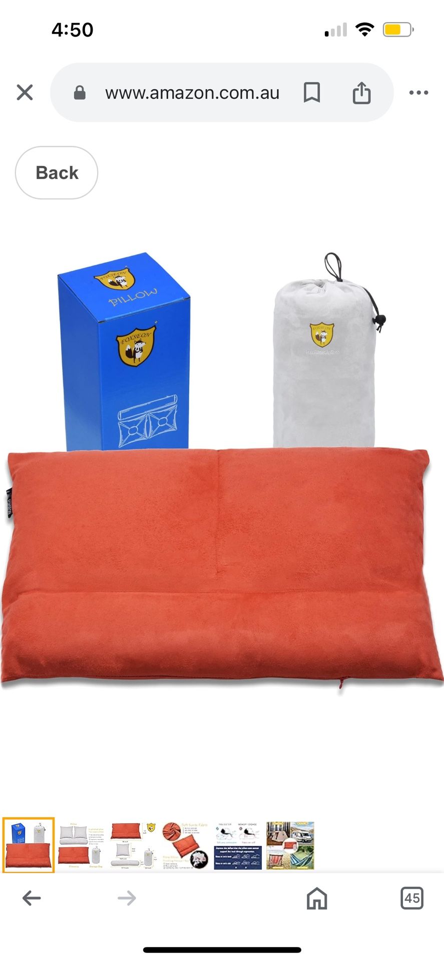FOXSEON Travel Pillow,Support Neck Pillow for Sleeping and Traveling and Camping, with Pillow Bag Easy to Carry and Machine Washable(Orange). New, pickup at Herndon/99 area in Fresno
