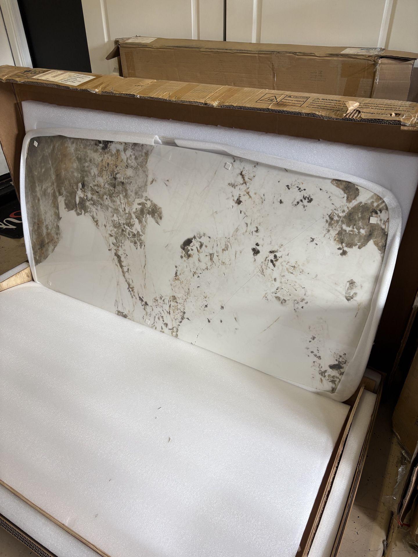 Stone table top. 64”x32” Damaged in a few places on the right side. A large crack going from one side to the other and a few chips in other areas as well. Wanted to offer this for a possible salvage project before I trash it. Free to who wants it!