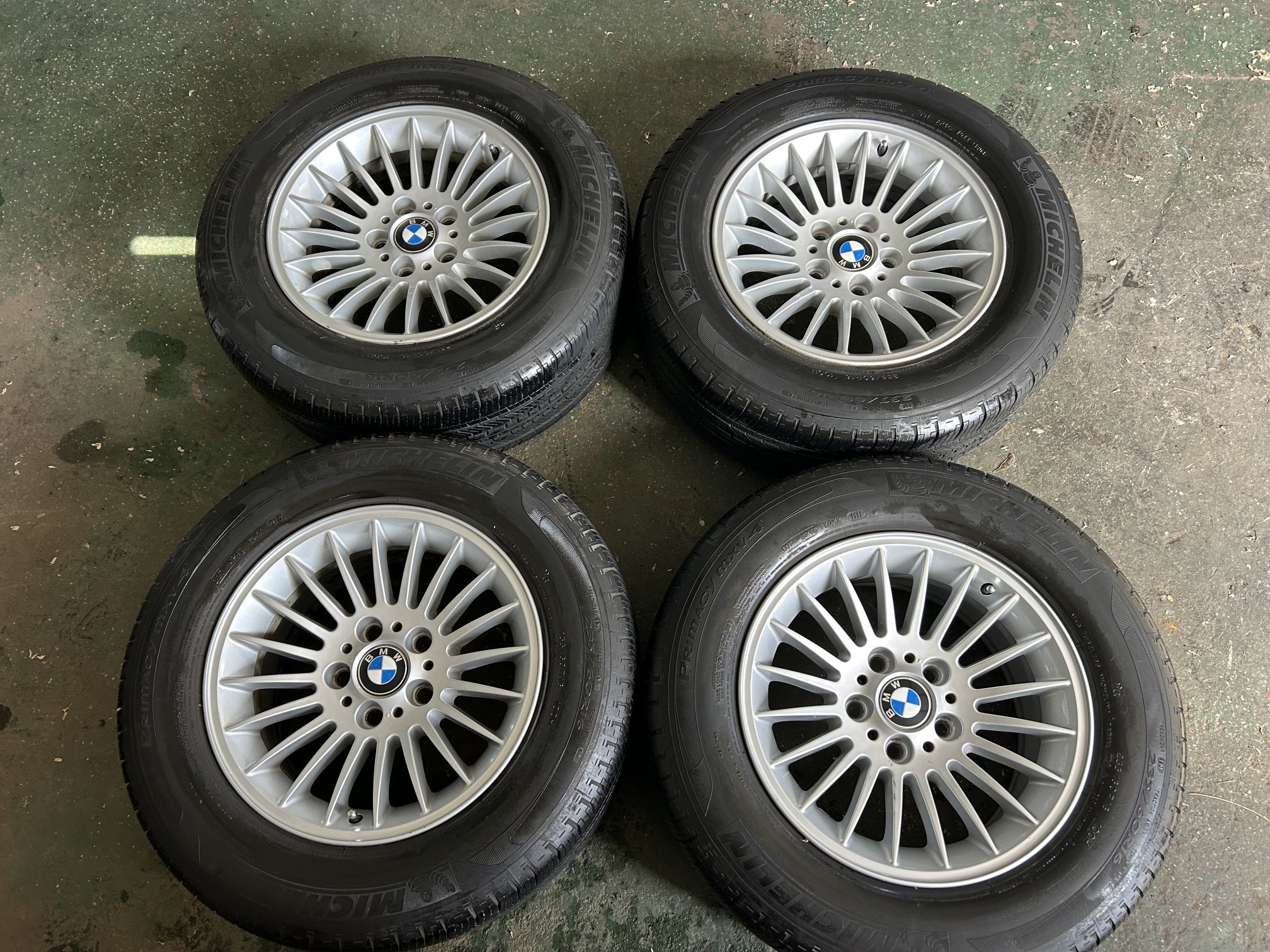 BMW OEM 16” Multi-Spoke Wheels with Michelin Tires • Wheel Size: 16-inch BMW OEM multi-spoke alloy rims • Tires: Michelin Primacy MXV4 • Tire Size: 235/60R16 100H • DOT: 2112 (Manufactured week 21 of 2012) • Condition: like new ✅ • BMW X3: 2004–2010 (E83) • BMW 3 Series: 2005–2012 (E90/E91/E92/E93, check exact wheel offset and bolt pattern) • BMW 5 Series: 2004–2010 (E60/E61, depending on wheel offset)