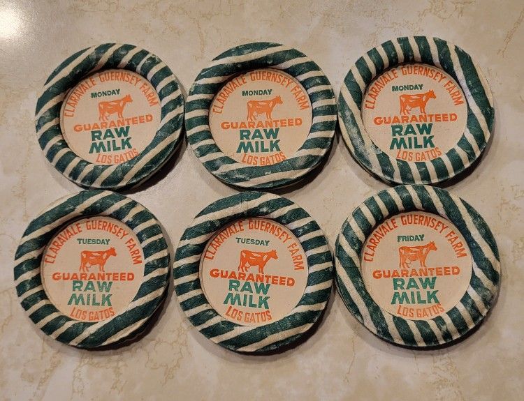 Claravale Guernsey Farm These are from the original dairy in Los Gatos ca Used for quart glass milk bottle tops. 2 -1/4" Diameter