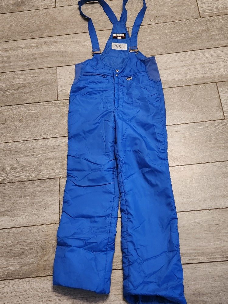 Bag of snow clothes, 5 adult bib pants, 2 pants, one jacket and 5 pairs of snow gloves. Perfect for a family snow trip. All in good condition.