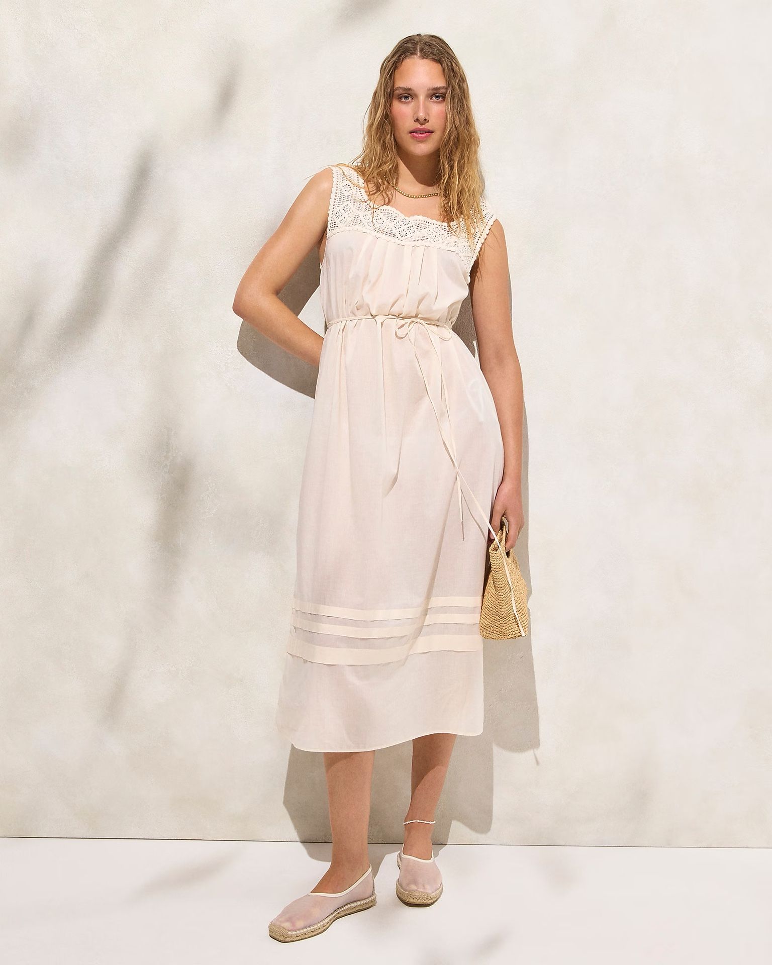 J Crew NWT Crochet Trim Dress Size Small in Antique White (Beige) Organic Cotton