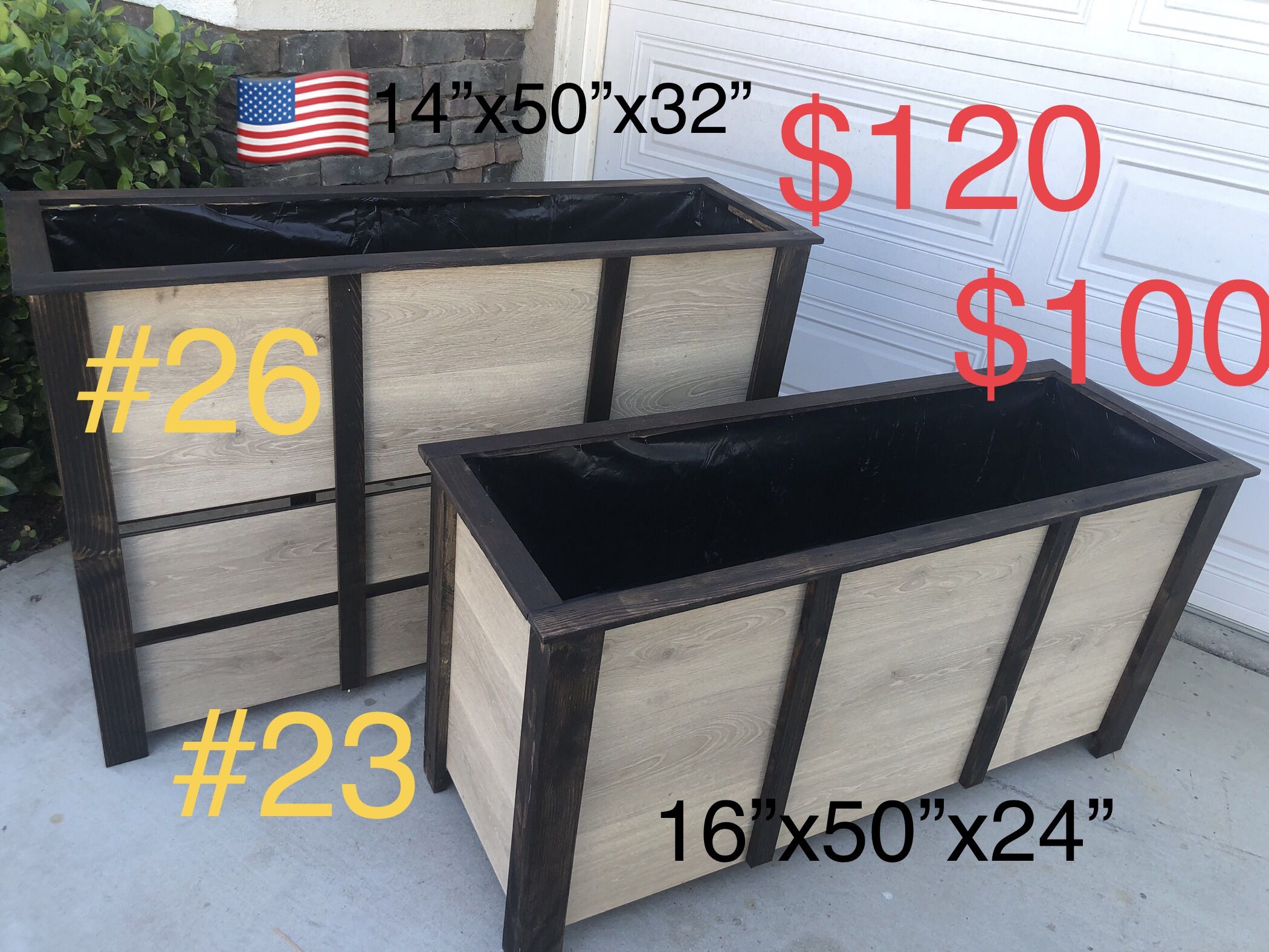 line of planters made of wood with a fine finish and protected inside and outside (standard measurements) permanent stock, plants are NOT included