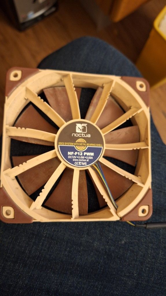Nocturnal NF-F12 PWM SS02 SYSTEM WITH METAL BEARING SHELL 120mm premium quiet fan. The fan is used but in good shape and still very quiet with amazing air flow. These fans retail for $30+ online. I have 2 fans of the same model and they come with 1 Y cable adapter to bring down the voltage for a quiet cool mode. I'll take $35 for both fans.