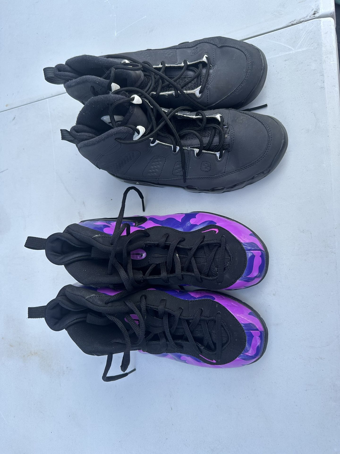 Selling black Jordan kids size 3Y $20 Selling black and purple Nike Foamposits 3Y $20