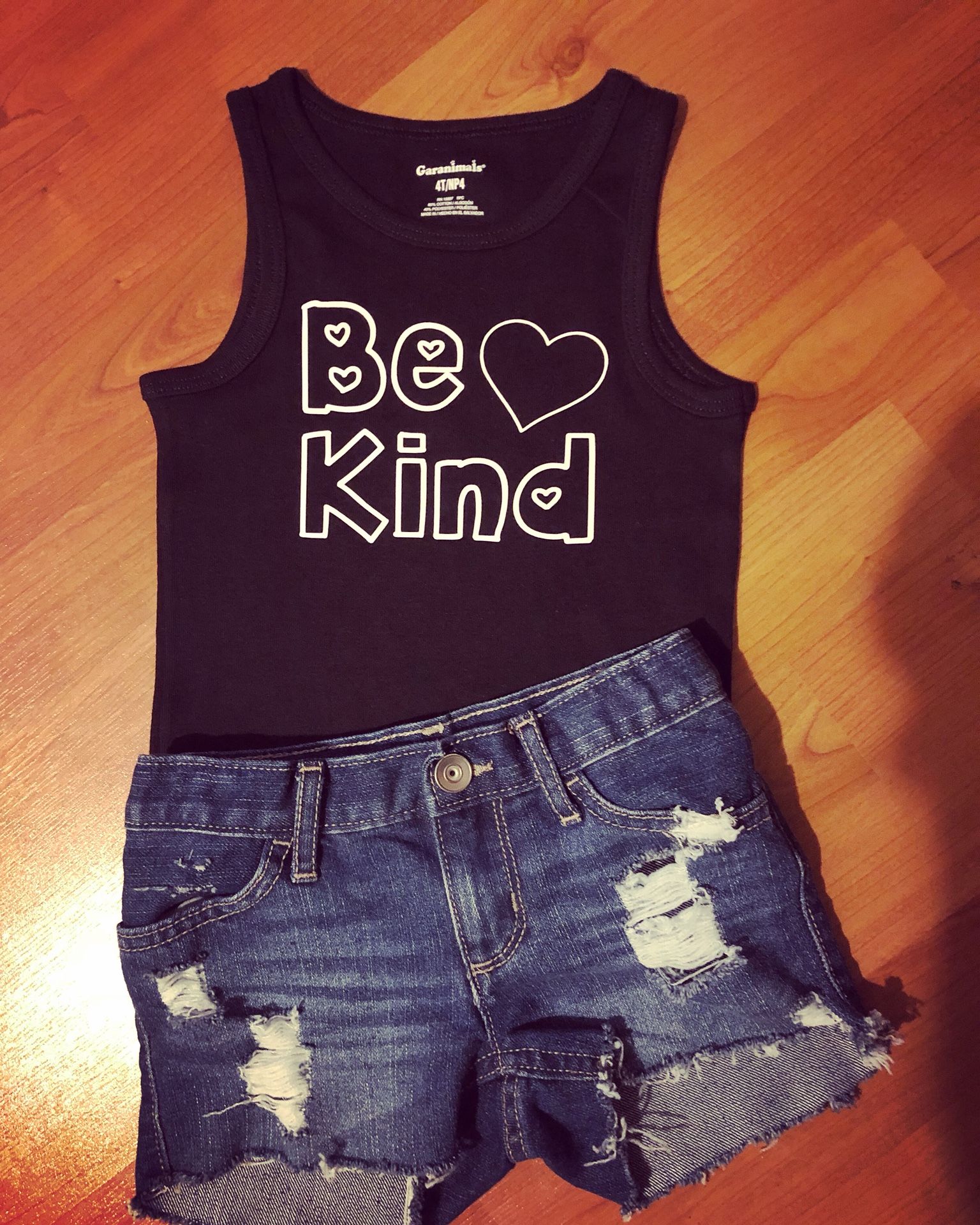Tank is custom made new and denim is new but has been washed/dried once for distressing both are 4T