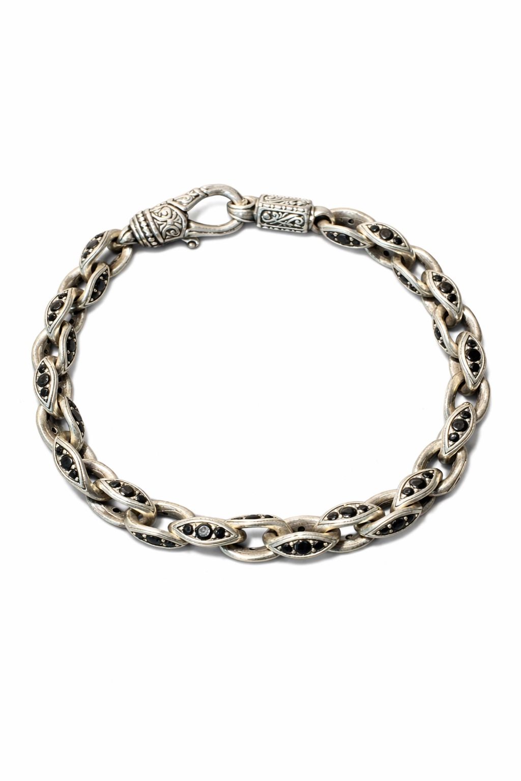 Konstantino Plato Collection Sterling Silver Black Spinel Mens Link Bracelet 8.5 inches