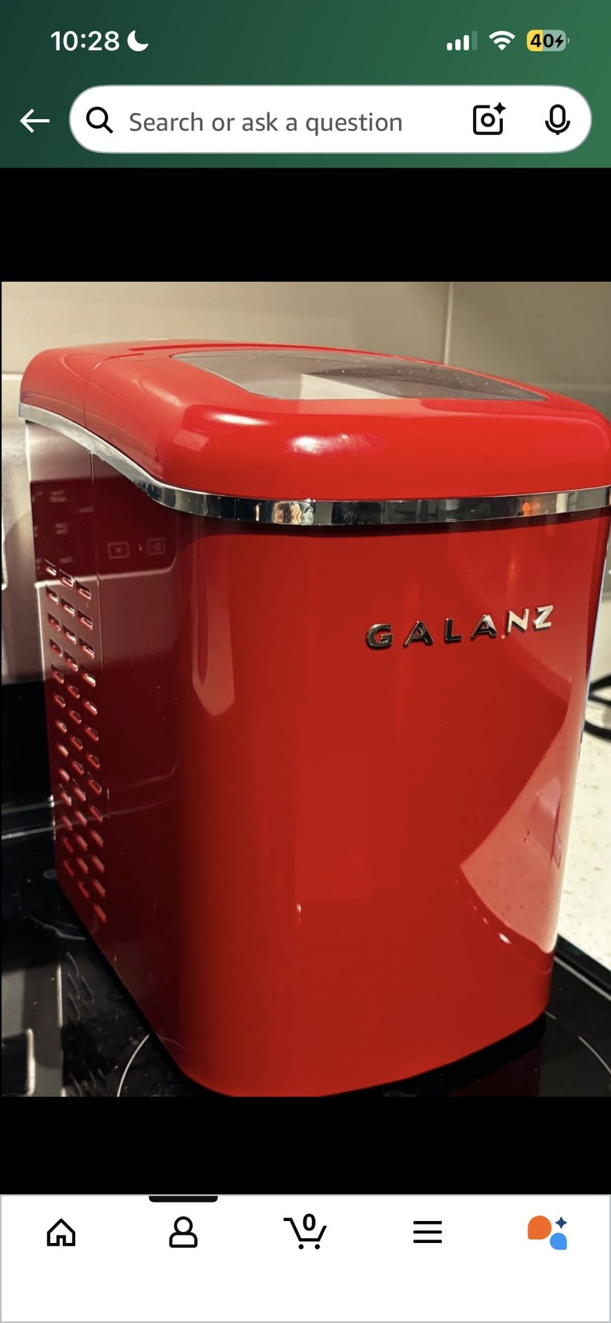 Galanz Portable Countertop Electric Ice Maker Machine, 26 lbs in 24 Hours, 9 Bullet Shaped Cubes Ready in 9 Minutes, 2 Ice Sizes, Perfect for Parties & Home Bar, 2.1 L, Retro Red
