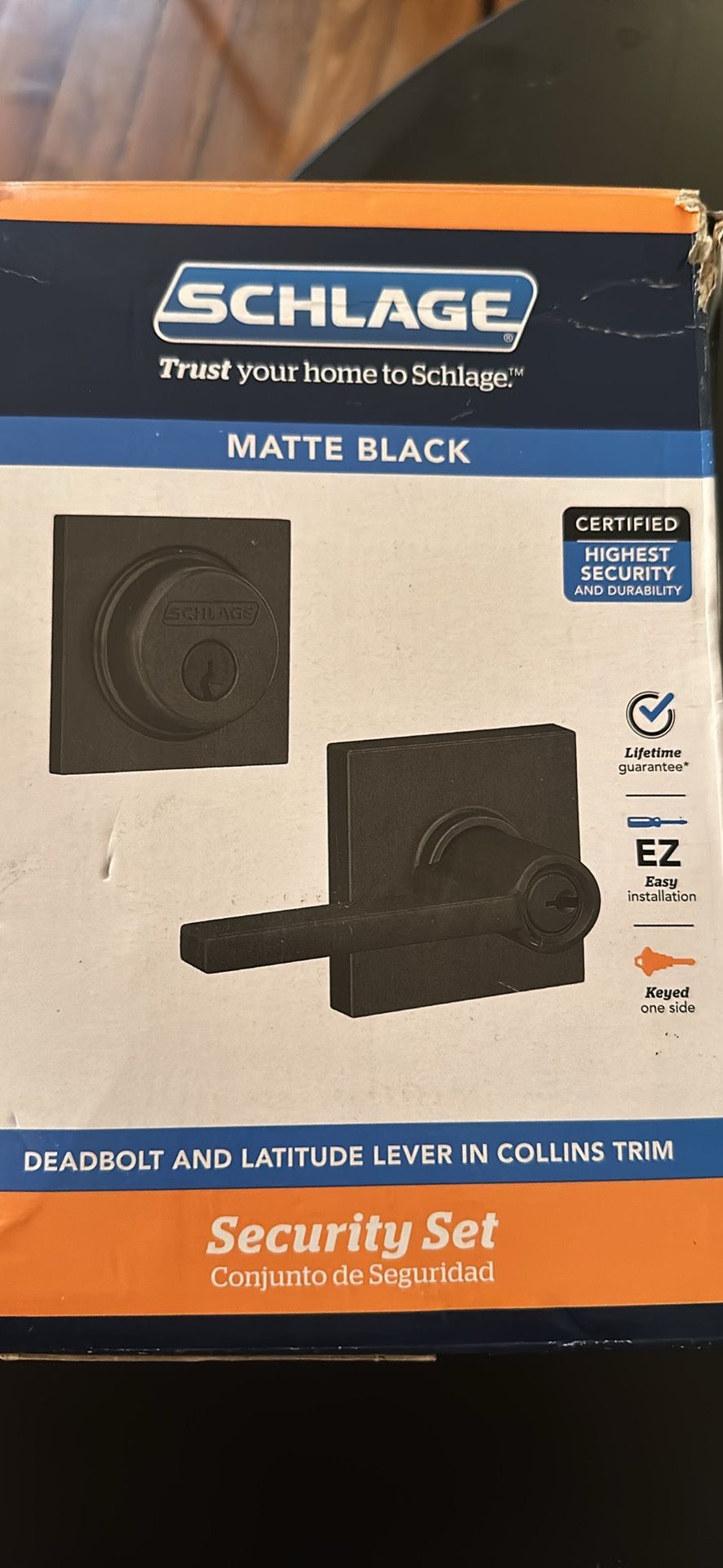 Schlage FB55N G LAT 622 COL Single Cylinder Deadbolt and Keyed Entry Latitude Lever with Collins Trim, Matte Black