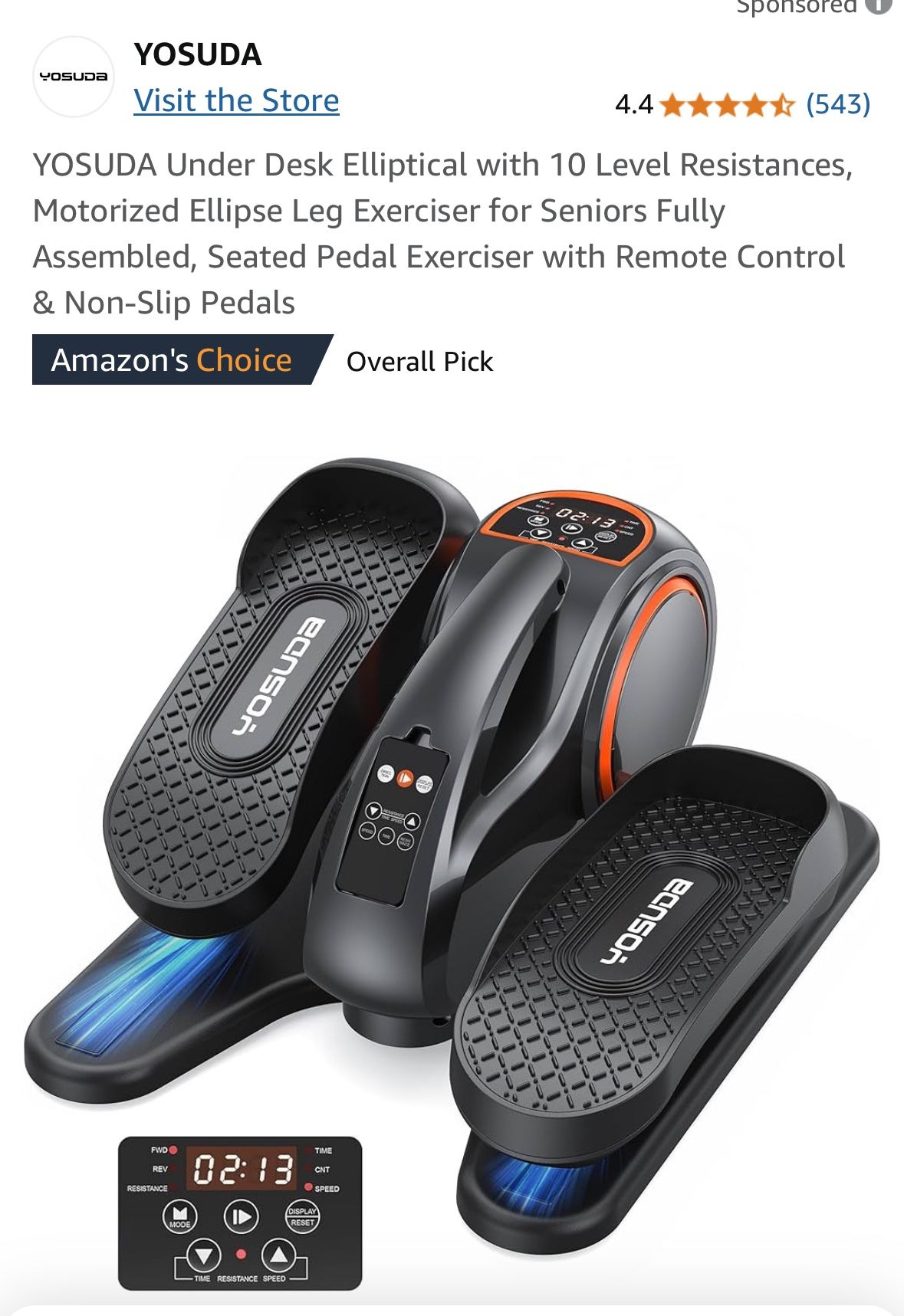 YOSUDA Under Desk Elliptical with 10 Level Resistances, Motorized Ellipse Leg Exerciser for Seniors Fully Assembled, Seated Pedal Exerciser with Remot