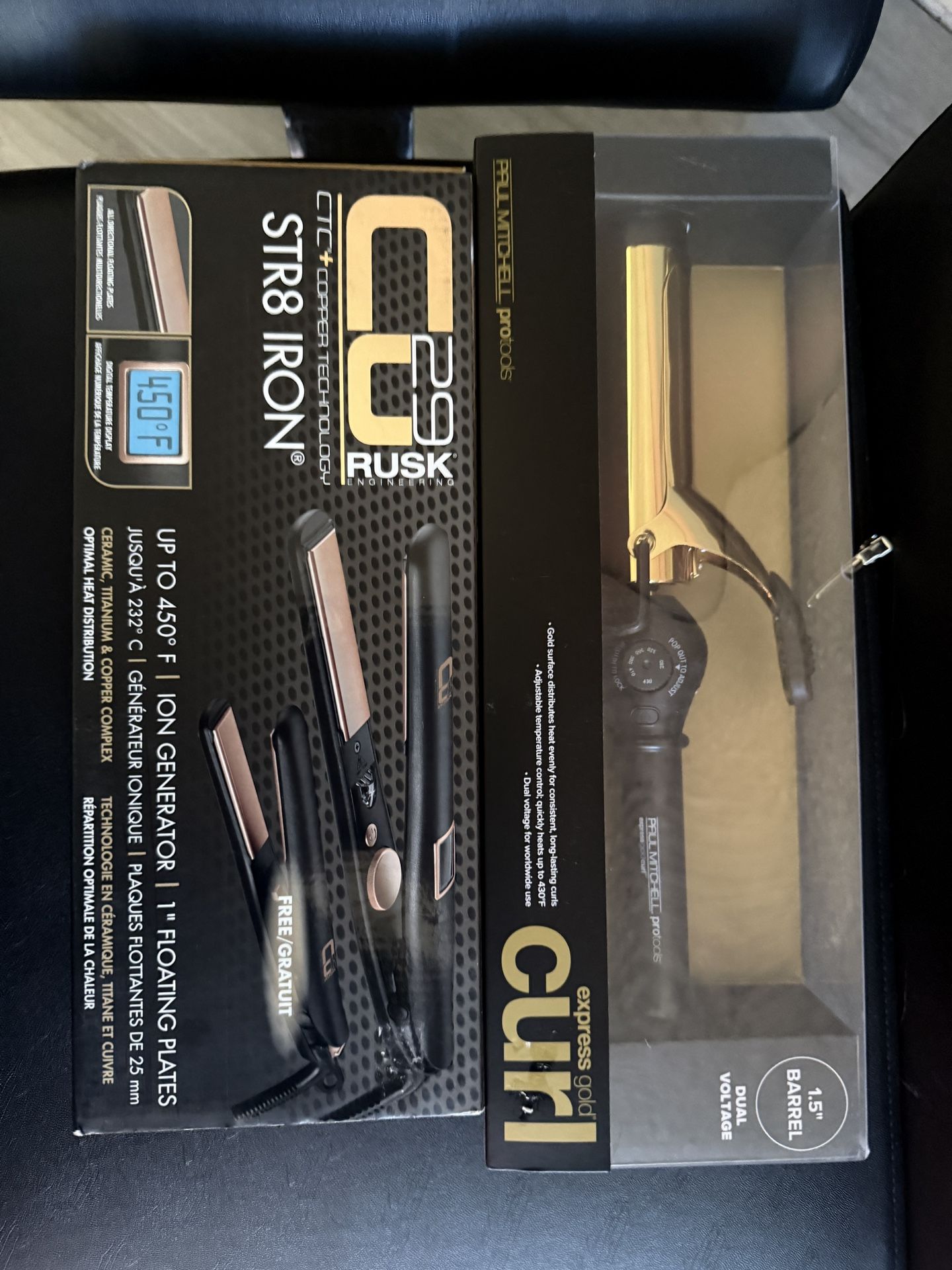 hair straightener boxes are $100 each comes with 2 hair straighteners one fullsize and one for travel the curling iron in $50 is a 1.5 barrel curler