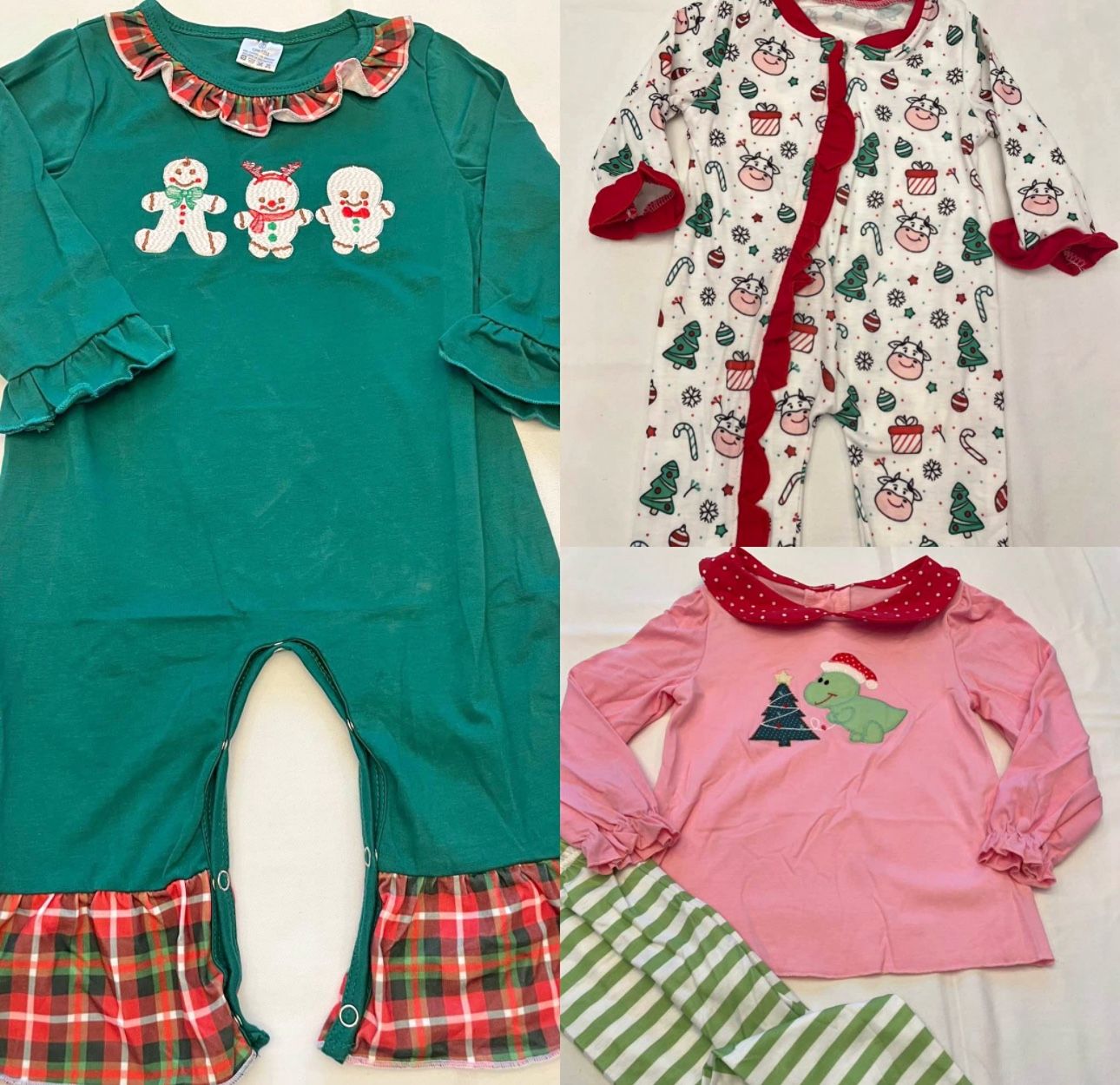 New boutique Christmas sets in various sizes and styles Christmas Cow - 3/6m $7 Green Gingerbread Men - 0/3, 3/6, 12/18, 2t, 3t $7 Pink 2pc 🦖 Set - 5t, 6/7 $8 Located East Mesa