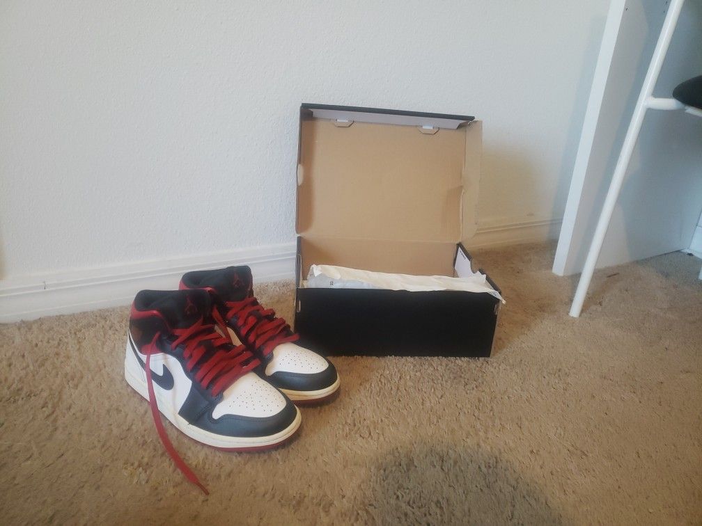 Air Jordan 1 Mid White/Gym Red-Black (US Size 8.5) (Fair Condition)