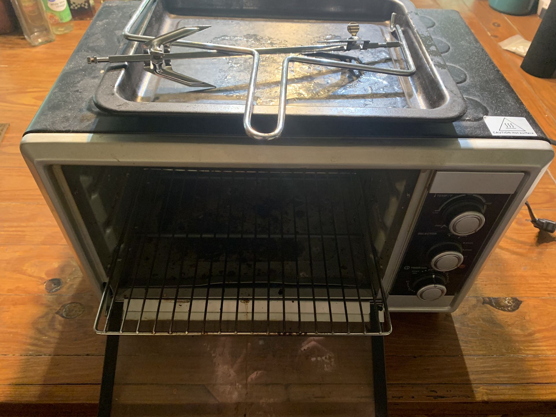 Analog toaster oven with rotisserie. Goes up to 450 degrees. 5 yrs old, light use, works perfectly.