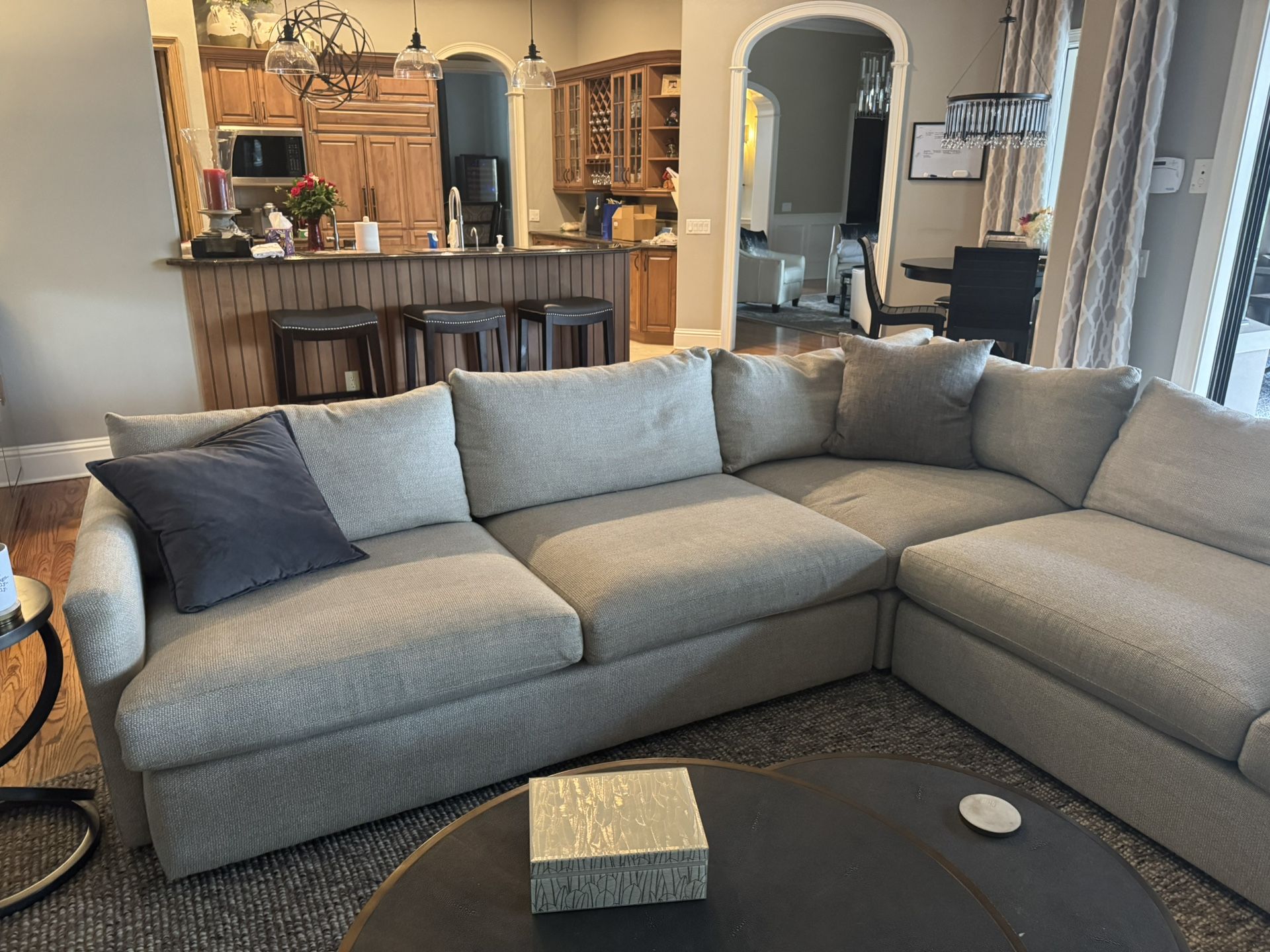 Sectional originally from Crate&Barrel. It’s around six years old. It’s 125x 125 46 D