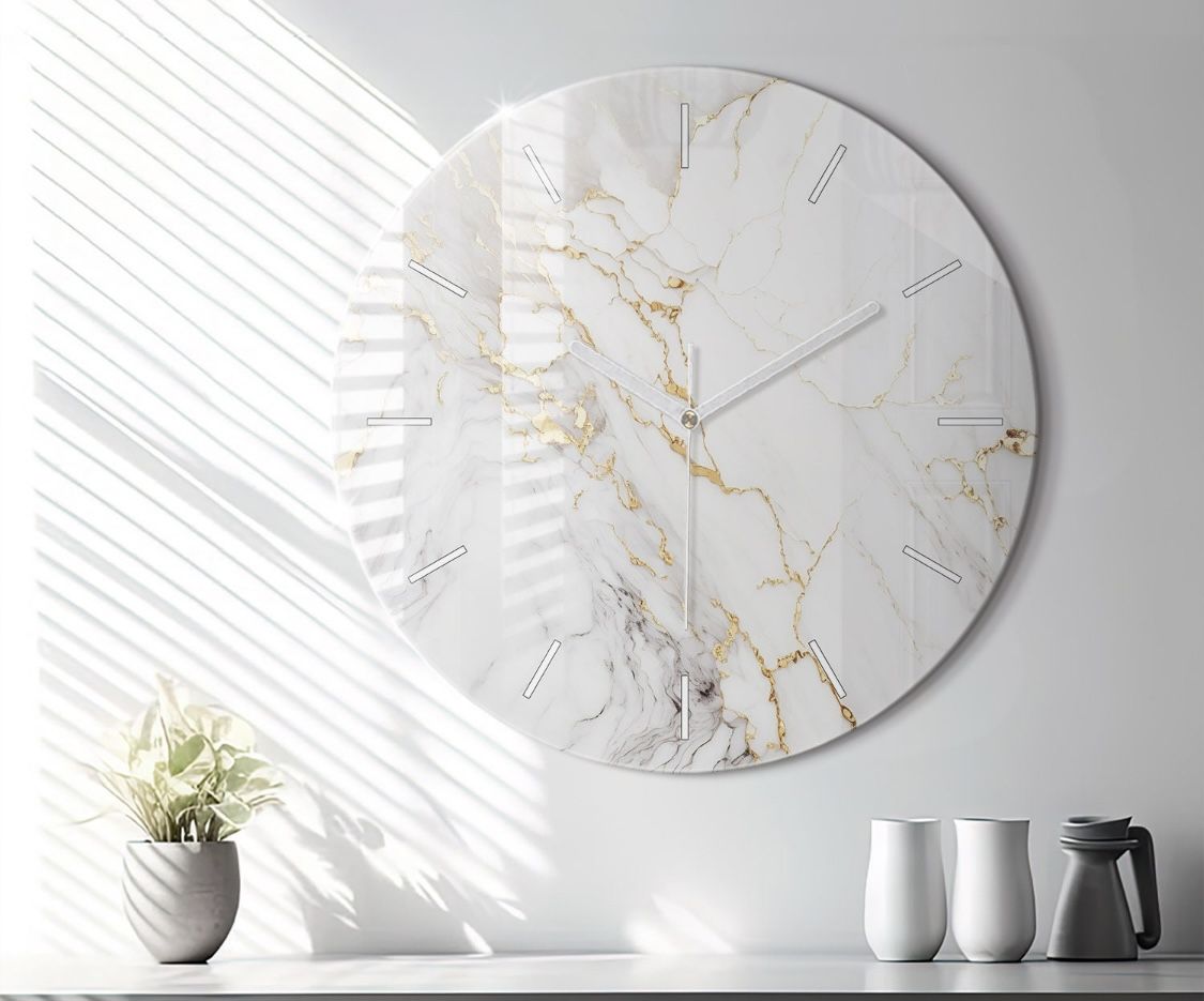 Glass Huge 24” D Clock Beige Marble Design Minimalist