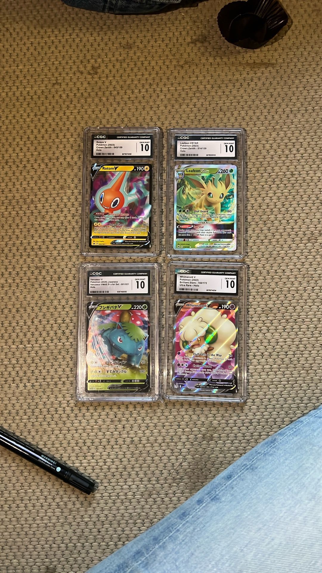 Rotom V, Leafeon VSTAR, Venusaur V, And Whimsicott V Graded Pokemon Collectible Cards