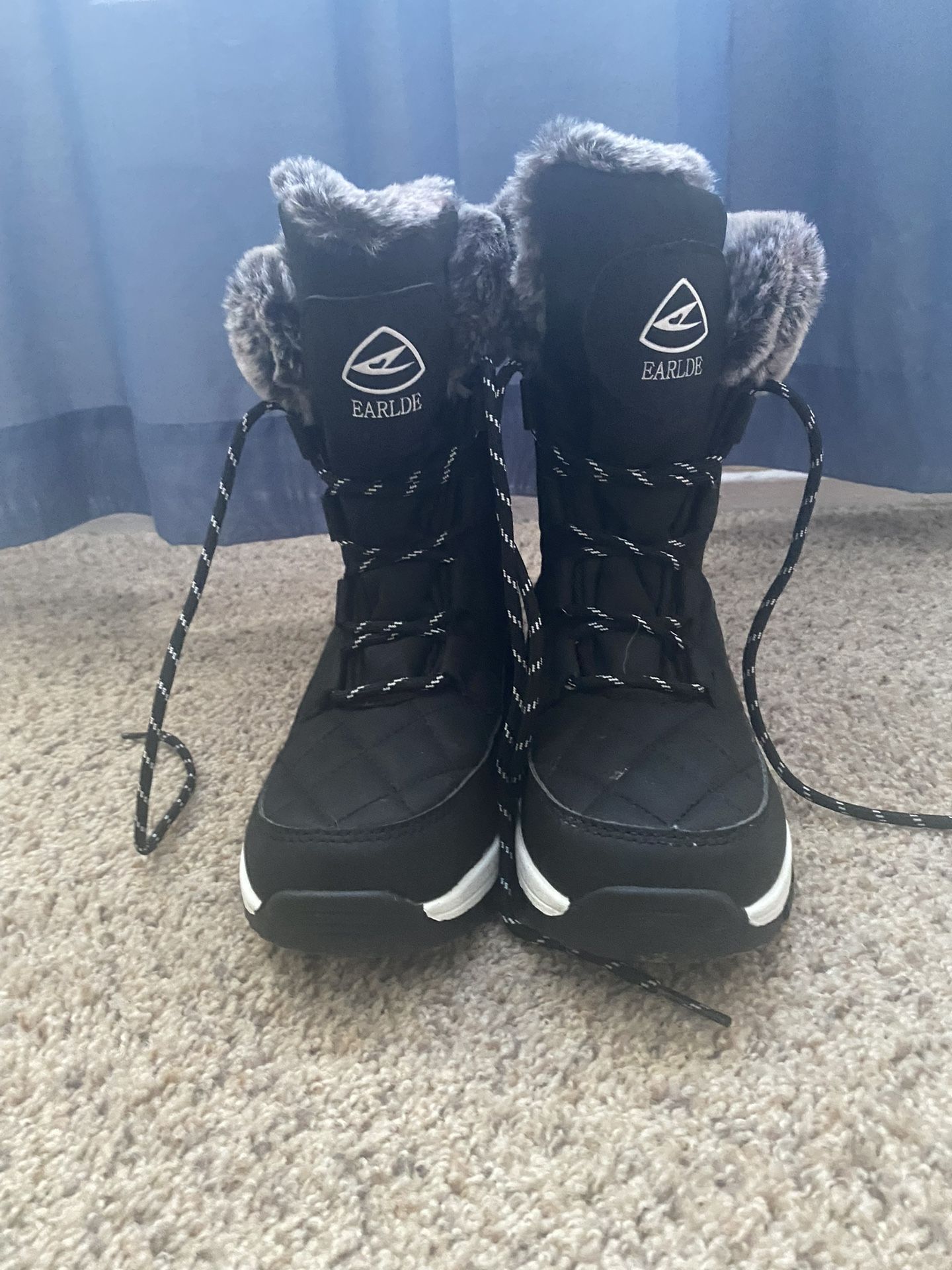 Size: 7.5 It uses breathable leather and textiles and it is easy to clean with waterproof surface. Durable rubber sole makes walking easy and comfortable. The outsole has outstanding grip to avoid slipping while walking. Lace up design is easy and fashionable. Full fur lined coverage keeps your feet warm in the cold winter. 【Rubber Sole】Durable rubber sole ensures walk stably 【Waterproof leatehr】Waterproof leather makes shoes dry and comfortable by blocking snow, rain or other liquid and easy to clean. 【Lace up】Lace up design makes you adjustable and fashionable and matches with all your clothes well. 【Fur】Full fur lined coverage from mid-calf to insole keeps inside warm and soft. 【Occasion】Suitable for any occasions including outdoor, indoor, walking, hiking, and you will fall in love with amazing comfortable feelings. $49.99