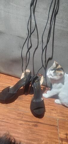 Chic and trendy black heels with long lace-up straps that can be tied around the ankles or up the legs for a stylish look. These open-toe heels feature a solid block heel for comfort and stability, perfect for dressing up any outfit — from casual jeans to a night-out dress. Details: Color: Black Style: Lace-up / open-toe heels Heel height: Approx. 3–4 inches Material: Faux suede upper Condition: Gently used, great condition Selling for $50 OBO – message if interested!