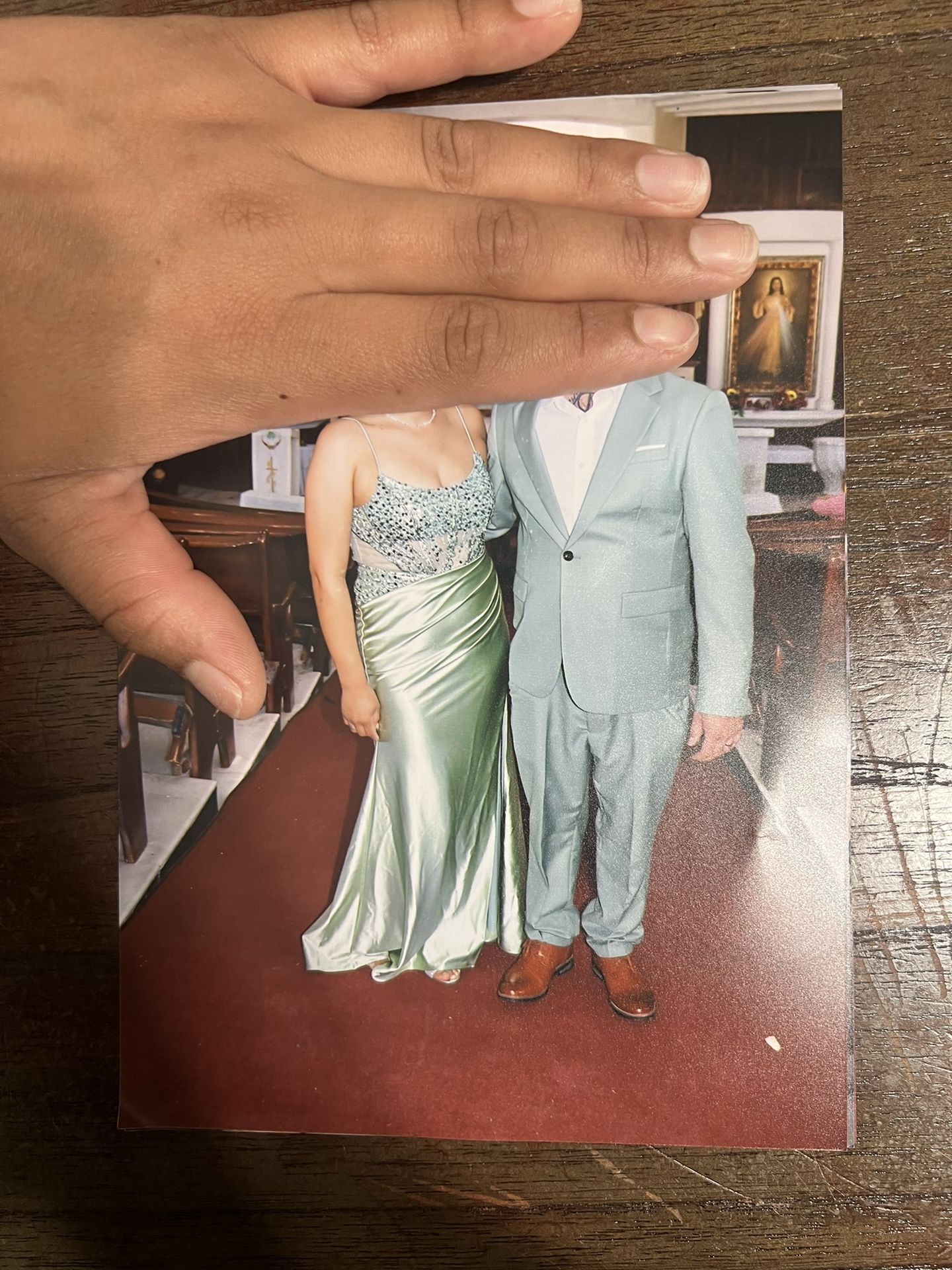 Dress size 8 and suit large. Worn once. Color is green Sage