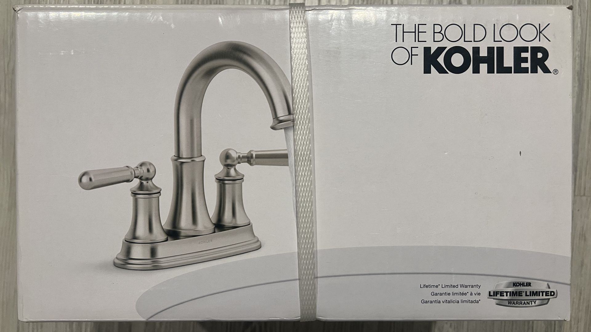 New in the box. Kohler Capilano 4 in. Centerset 2-Handle Bathroom Faucet in Vibrant Brushed Nickel