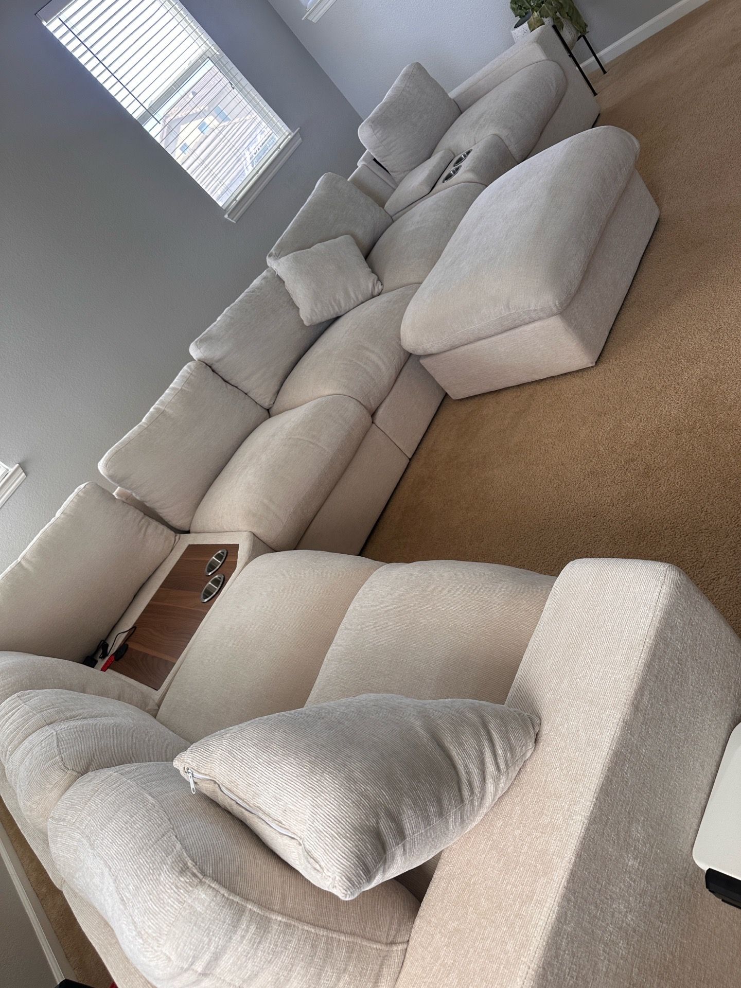 Deantrei Corner Sectional Sofa With Cupholder Console With A Corner Table With USB Port, Ottom